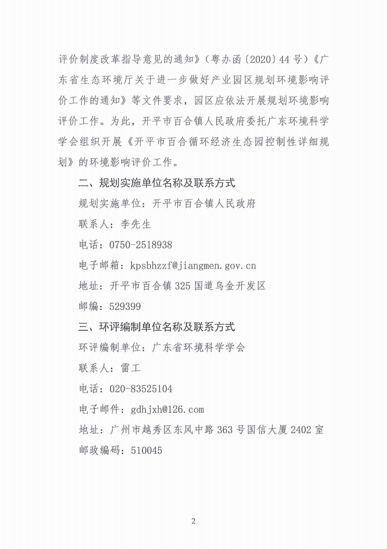 開平市百合靜脈產(chǎn)業(yè)園規(guī)劃環(huán)境影響評價公眾參與