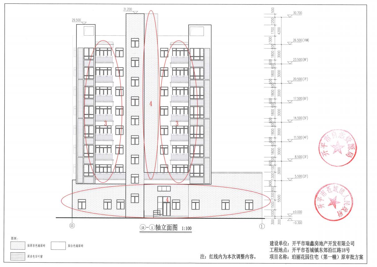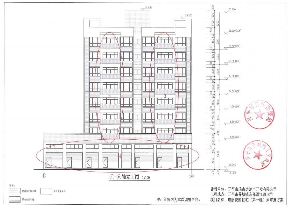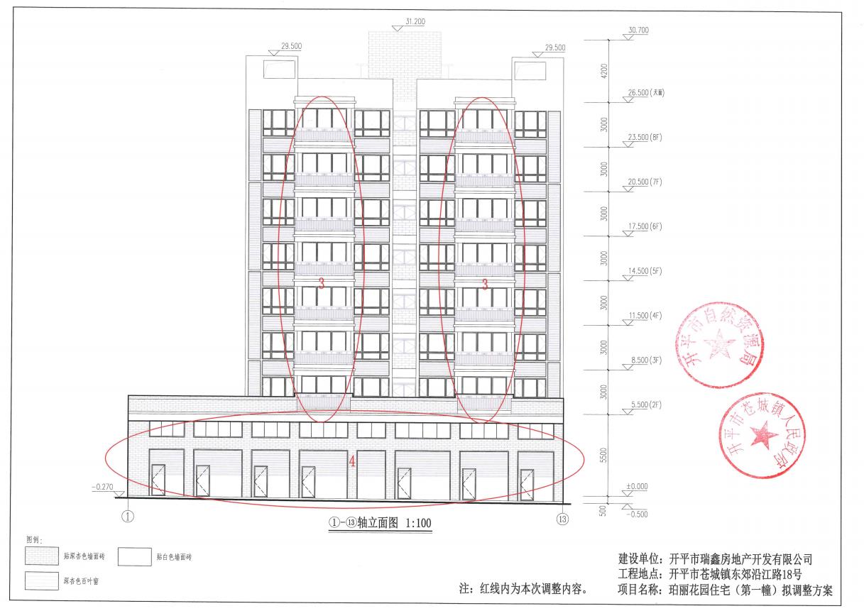 關于開平市蒼城鎮東郊沿江路18號珀麗花園項目住宅(第一幢)報建圖調整的公示