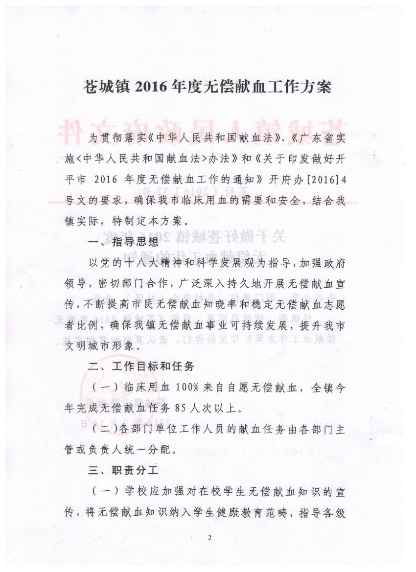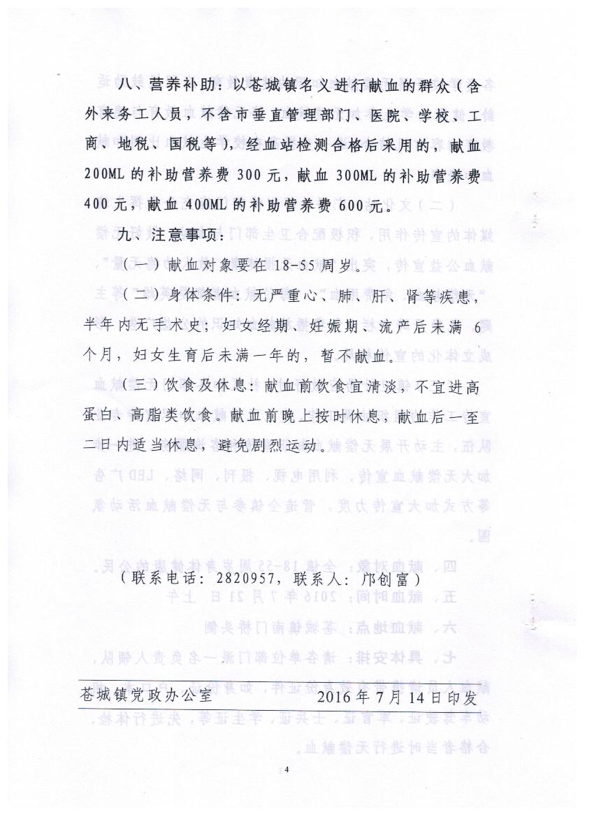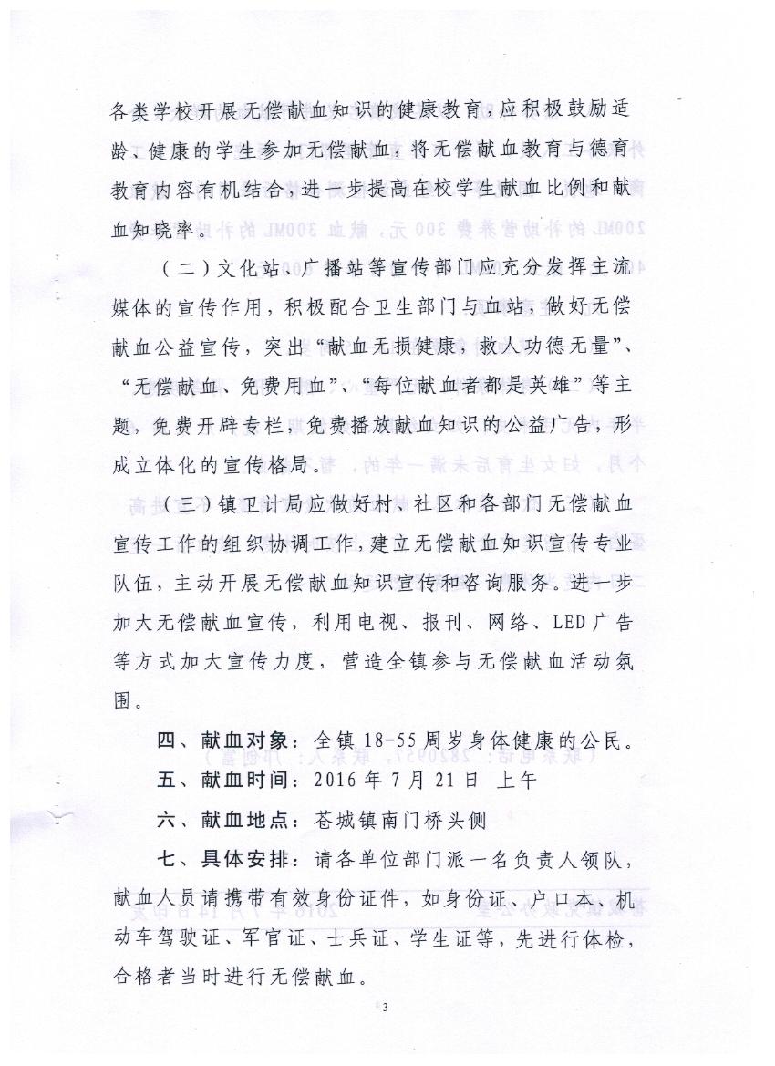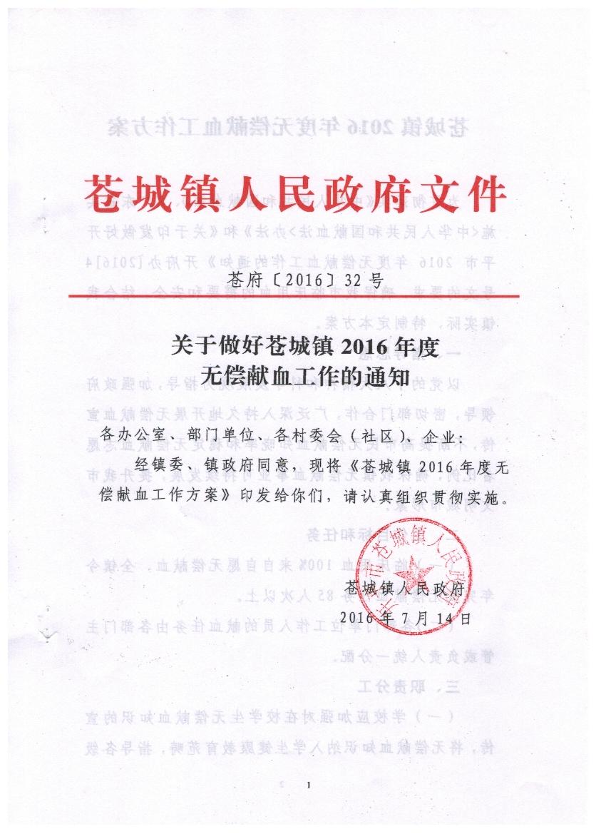 關于做好蒼城鎮2016年度無償獻血工作的通知