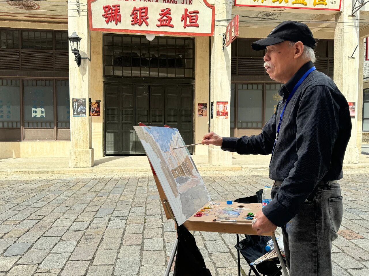 美國油畫家協(xié)會大師級會員司徒維能凝神觀照,揮筆繪寫古鎮(zhèn)晨間街道的鮮活景致。
