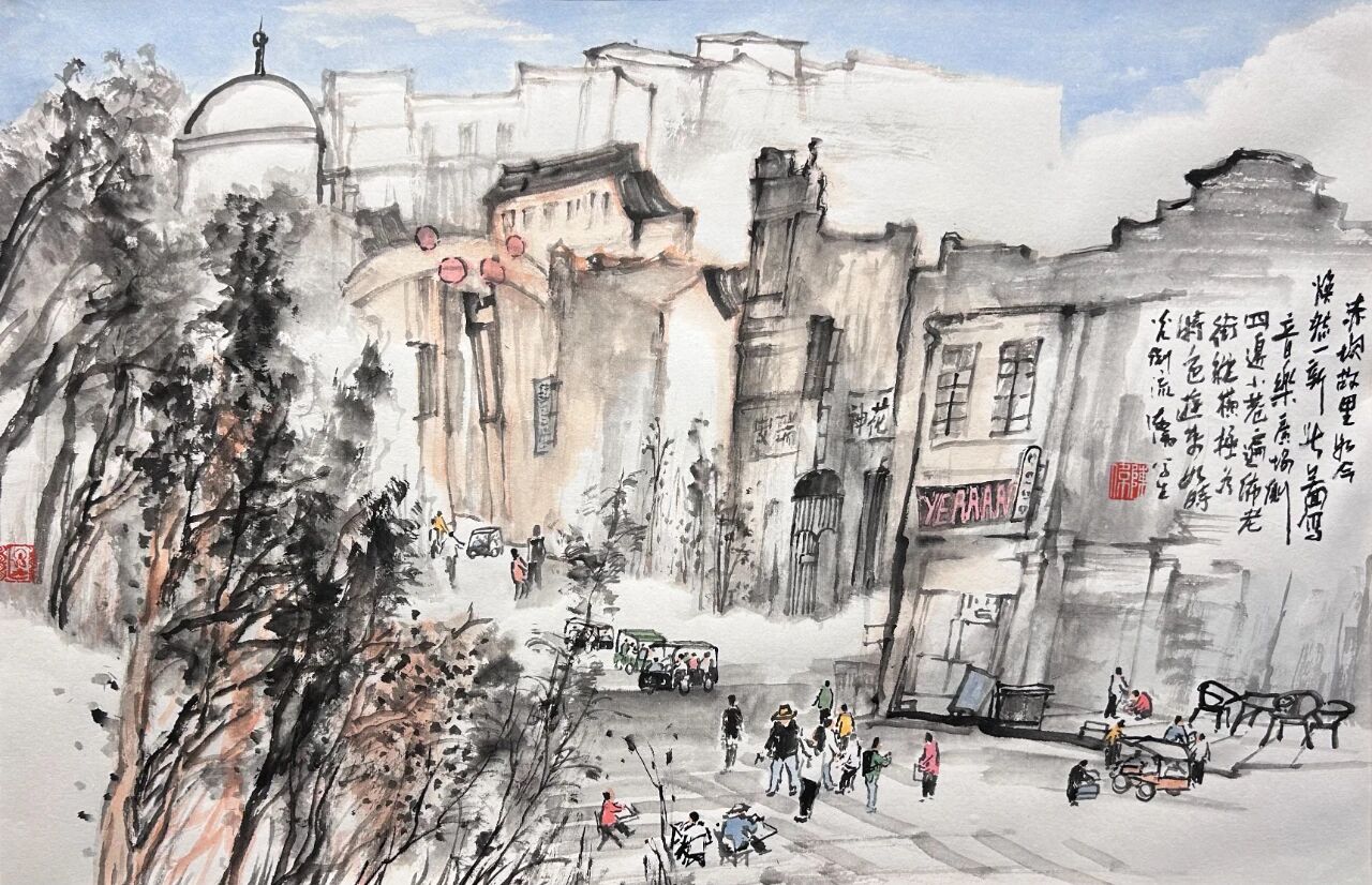 赤坎華僑古鎮(zhèn)藏新韻 修舊如舊的騎樓群 靜謐流淌的潭江水與 井然有序的文旅業(yè)態(tài) 共同鋪展成一幅嶄新僑鄉(xiāng)畫卷 藝術(shù)家們走進古鎮(zhèn)街巷 既聚焦南洋風(fēng)情拱券 雕花窗欞等歷史細節(jié) 更著力勾勒古老建筑經(jīng) 精心保育活化后煥發(fā)的鮮活生機