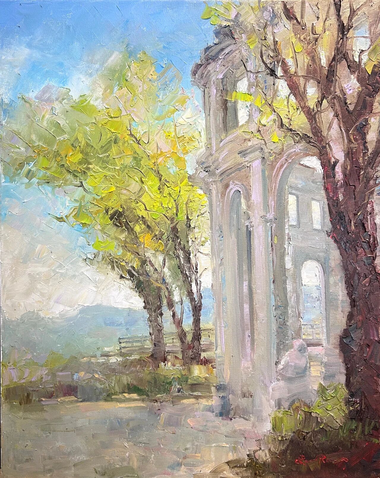 楊軍《赤坎僑廊光影》 油畫 45cm×65cm 2025年
