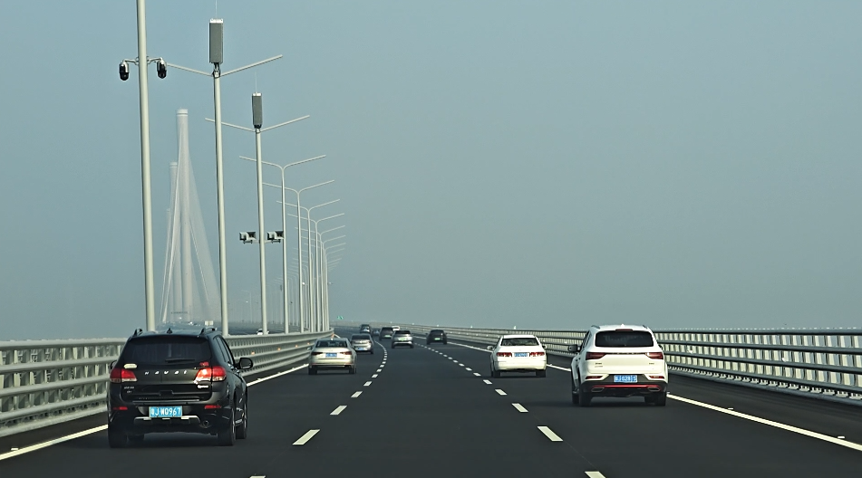 首批車輛行駛在黃茅??绾Mǖ?。郭永樂 攝