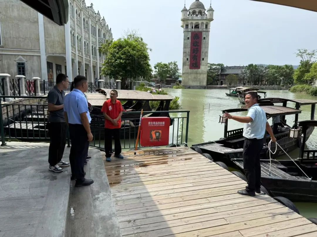 臺風“韋帕”生成之初,赤坎鎮有序開展防臺風部署,實地督導檢查風險隱患排查、人員轉移安置、應急物資儲備等各項工作。嚴格執行三防工作機制,嚴密監測風情雨情水情,確保指令暢通、響應迅速。 7月20日上午,開平市人大常委會副主任、市世遺風韻農文旅融合發展產業園黨工委專職副書記譚意軍同志帶領赤坎鎮應急管理辦到赤坎華僑古鎮景區,了解滯留在景區旅客的疏散情況,對景區防范臺風做了具體安排,要求集中力量盡早盡快做好旅客的疏散工作,并做好閉園的宣傳和解釋工作,落實好景區內各項防臺風措施和應急救援工作。