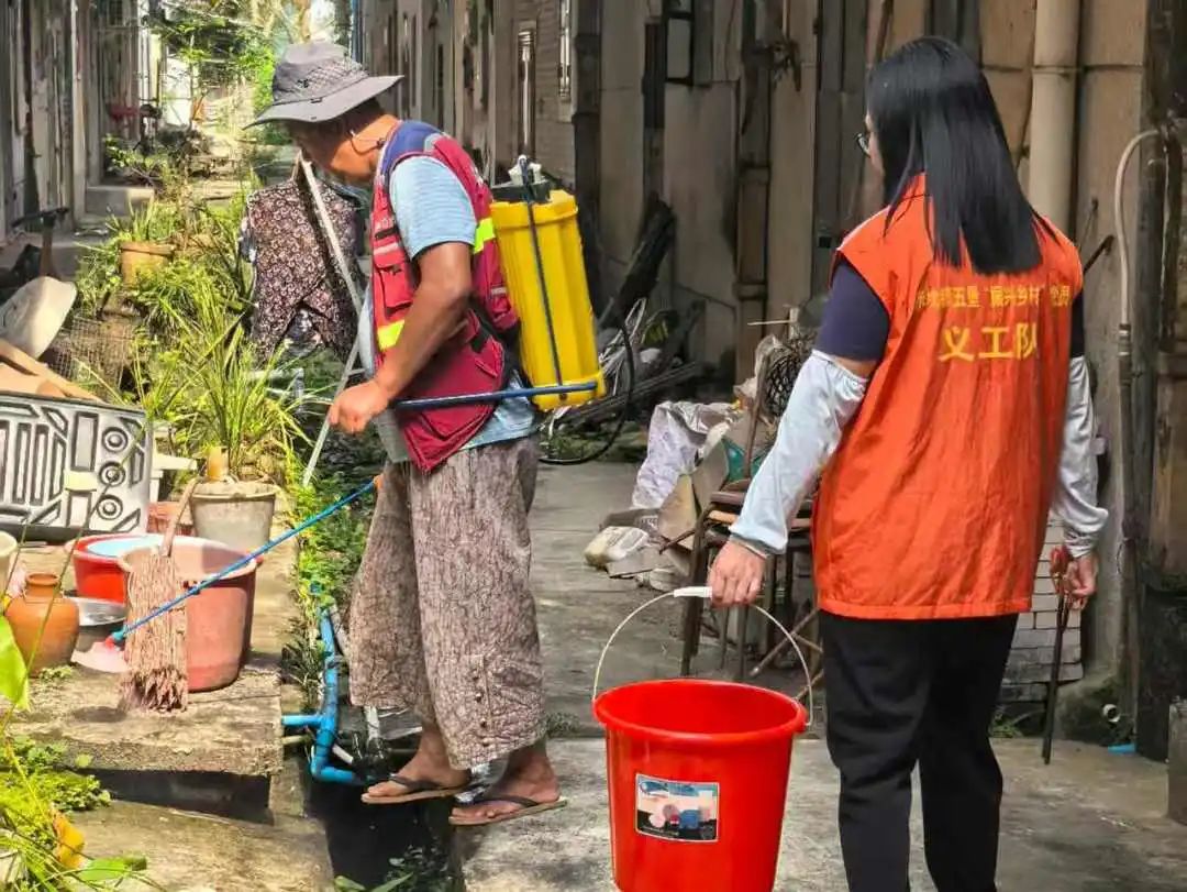 石溪村開展環境衛生整治,噴藥消殺滅蚊