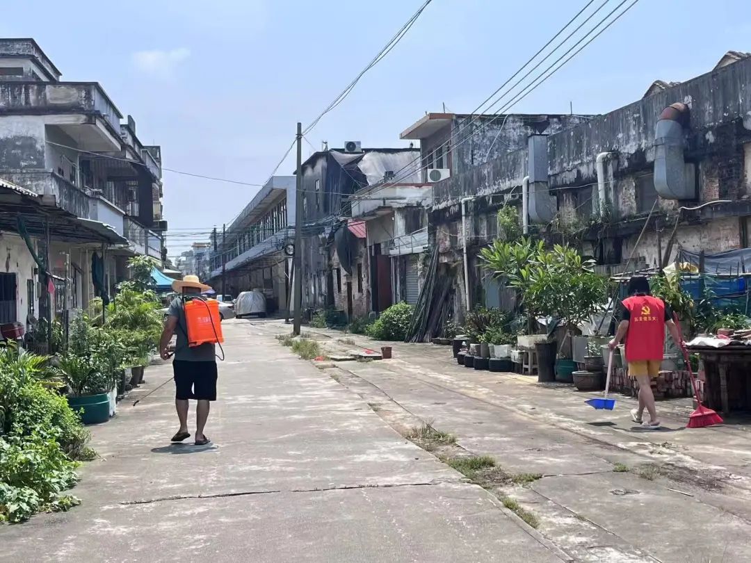 塘美村開展環境衛生整治,噴藥消殺滅蚊