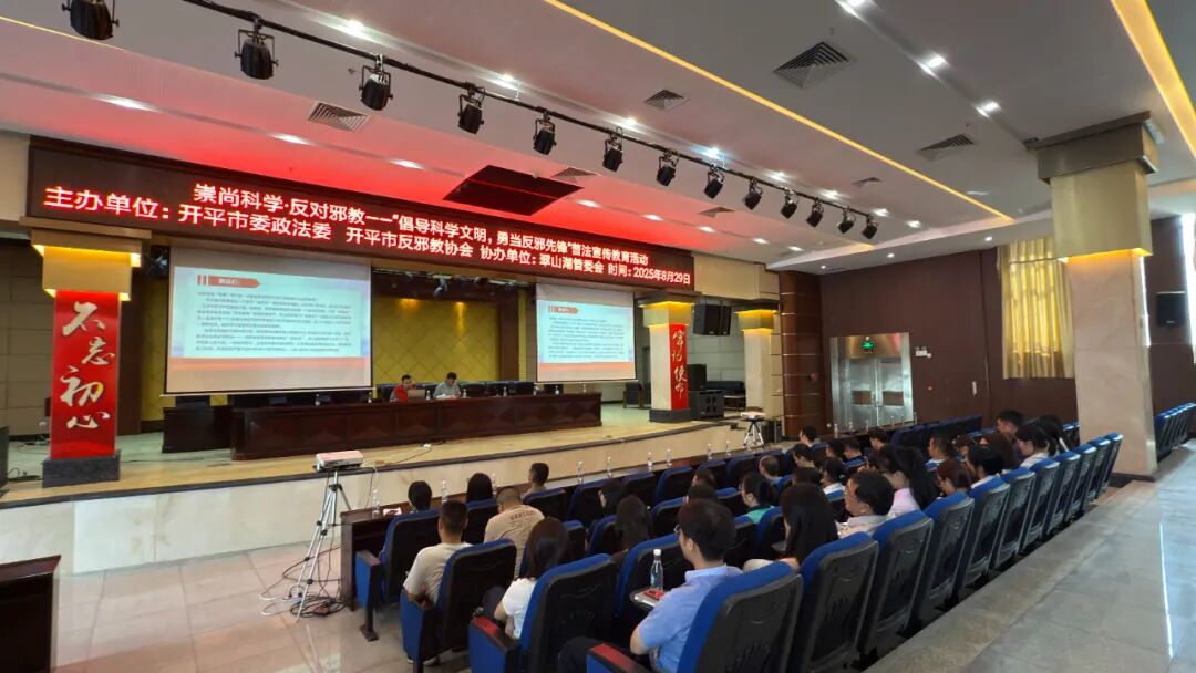 在本次活動中,開平市委政法委工作人員同時也進行了反邪教普法教育,聚焦反邪教工作的核心要點,結合具體案例,講解了邪教基本概念以及當前反邪教斗爭形勢,同時詳細介紹了常見邪教活動的應對辦法,教育引導企業群眾提高防邪拒邪意識,強化企業群眾身心健康教育,營造安全穩定的平安翠山湖。