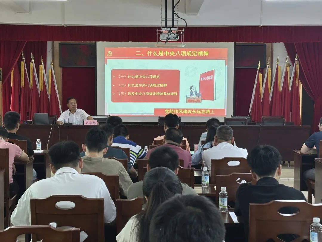 宣講會上,梁東想以《學(xué)習(xí)貫徹中央八項規(guī)定精神》為主題,圍繞“為什么要貫徹落實中央八項規(guī)定精神、什么是中央八項規(guī)定精神、怎么樣貫徹落實中央八項規(guī)定精神”三個方面展開深入解讀,深刻闡釋了中央八項規(guī)定出臺的歷史邏輯以及中央八項規(guī)定精神的豐富內(nèi)涵和實踐要求。宣講內(nèi)容層次分明、案例豐富,既有高瞻遠矚的理論高度,又有深入淺出的案例剖析。這次專題宣講,進一步加深了全鎮(zhèn)黨員干部對中央八項規(guī)定及其實施細則精神的認(rèn)識和理解,對教育引導(dǎo)全體黨員、干部進一步增強紀(jì)律規(guī)矩意識、從嚴(yán)加強自我約束、加快轉(zhuǎn)變工作作風(fēng)具有重要的指導(dǎo)意義。 大沙鎮(zhèn)全體黨員、干部堅持原原本本研讀《習(xí)近平關(guān)于加強黨的作風(fēng)建設(shè)論述摘編》、中央八項規(guī)定及其實施細則精神、《黨的十八大以來深入貫徹中央八項規(guī)定精神的成效和經(jīng)驗》《八項規(guī)定改變中國》等學(xué)習(xí)教育規(guī)定內(nèi)容,在理論自學(xué)與專題教學(xué)的基礎(chǔ)上,鎮(zhèn)黨委精心組織開展年輕干部學(xué)習(xí)教育研討會。會上,30多名年輕干部緊密結(jié)合所學(xué)內(nèi)容以及自身崗位實際,積極踴躍地分享學(xué)習(xí)心得,深入剖析存在的問題,并針對性地提出整改措施。在熱烈的交流中,大家各抒己見,在思想碰撞的火花里凝聚起廣泛共識。 大沙鎮(zhèn)黨委書記伍偉鵬強調(diào),黨員干部要以此次學(xué)習(xí)教育為契機,持續(xù)深化對中央八項規(guī)定精神的理解和把握,增強黨性修養(yǎng)、嚴(yán)守紀(jì)律底線、改進工作作風(fēng)。一是要加強理論學(xué)習(xí),錘煉過硬黨性,保持政治上的絕對忠誠、理論上的絕對清醒、行動上的絕對堅決,以實際行動踐行“講誠信、懂規(guī)矩、守紀(jì)律”重要要求。二是要堅持問題導(dǎo)向,嚴(yán)抓反彈回潮問題、隱形變異問題、群眾反映問題、風(fēng)腐交織問題,大力營造和保持風(fēng)清氣正的政治生態(tài)。三是要強化剛性約束,不打折扣、不搞變通抓好執(zhí)行,把各項規(guī)定規(guī)矩落實到位,突出建章立制,強力整治“躺平式”干部,強化公職人員日常管理監(jiān)督,常態(tài)長效鞏固作風(fēng)建設(shè)成果。四是要突出務(wù)實求實,融通中心工作,以務(wù)實作風(fēng)推動全面深化改革、防范化解風(fēng)險、美麗圩鎮(zhèn)建設(shè)、抓黨建促農(nóng)村集體經(jīng)濟發(fā)展、民生福祉改善等重點任務(wù)落到實處、取得實效。