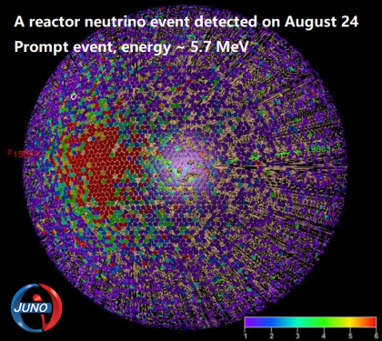 圖4. JUNO探測(cè)到的一個(gè)反應(yīng)堆中微子事例
