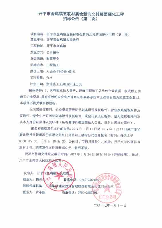 開平市金雞鎮五聯村委會新向北村路面硬化工程(第二次)