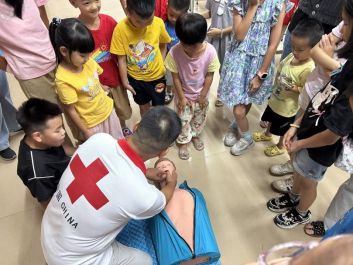 講師通過安全教育視頻解析典型案例,帶領孩子們逐條解讀“防溺水六不準”,結合“同伴落水如何正確呼救”“陌生水域能否戲水”等情景問答,明確自防邊界。開平市紅十字會講師重點演示心肺復蘇(CPR)全流程,從環境安全判斷到按壓深度、頻率把控,手把手糾正孩子們的實操動作,確保自救技能規范到位。