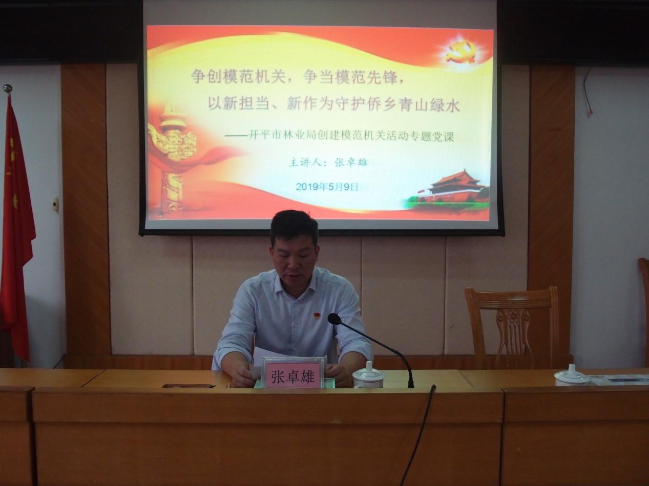 為深入推動模范機關創建活動扎實開展,5月9日,我局舉辦創建模范機關活動專題黨課暨5月主題黨日+活動。局機關(含森林分局及東山森林派出所)和孔雀湖國家濕地公園管理處、林科所黨員干部以及東山、鎮海林場班子成員、辦公室主任共60多人聆聽了宣講。會議由局黨組成員、副局長李雪清同志主持。 會上,張卓雄局長以《爭創模范機關,爭當模范先鋒,以新擔當、新作為守護僑鄉青山綠水》為題,結合林業工作實際,緊密圍繞“當好‘三個表率’、服務‘四個走在全國前列’”創建活動主題,為大家上了一堂生動精彩的專題黨課,對我局爭創模范機關,扎實促進林業生態文明建設,具有深刻的指導和推動作用。他就認真抓好我局創建模范機關活動提出了四方面意見:一是提高政治站位,充分認識加強黨的政治建設、創建模范機關的重要性和必要性;二是突出政治建設,扎實構建風清氣正的林業政治生態;三是積極主動作為,全力推進模范機關創建活動;四是立足服務大局,努力實現新時代新擔當新作為。張卓雄局長強調,林業系統全體黨員干部要積極參與模范機關創建活動,爭當模范先鋒,切實把我局打造成為讓黨放心、讓人民群眾滿意的模范機關,以新擔當、新作為守護僑鄉青山綠水。