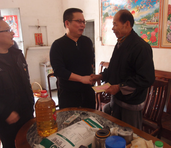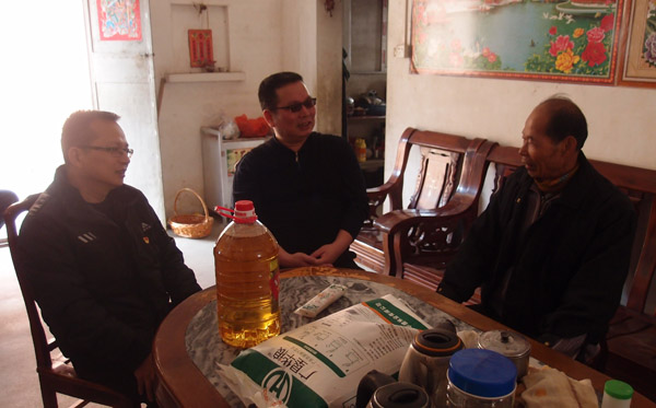 2月1日下午,我局張偉杰局長來到金雞鎮向北村委會的李恒益、劉華銳和黎錦榮等3戶貧困戶家中進行慰問,向他們送上食油、大米和慰問金。