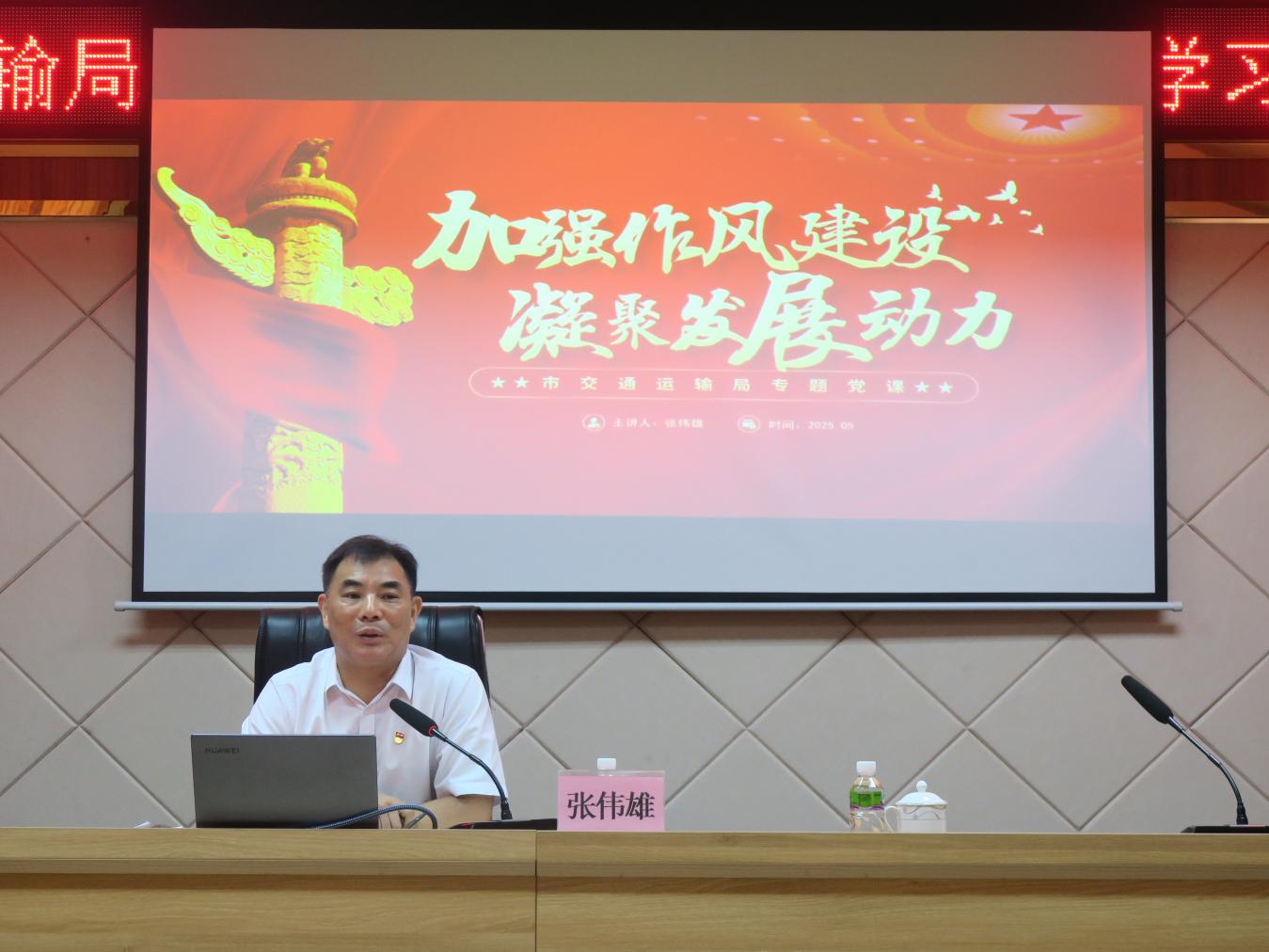 為深入學(xué)習(xí)貫徹中央八項規(guī)定精神,推動全局作風(fēng)建設(shè)走深走實,5月30日,市交通運輸局開展深入貫徹中央八項規(guī)定精神學(xué)習(xí)教育專題黨課。市交通運輸局黨組書記、局長張偉雄同志為市交通運輸局機(jī)關(guān)黨支部、市交通運輸服務(wù)中心黨支部、市地方公路水運服務(wù)中心黨支部全體黨員以及市航運總公司黨總支部、四方黨建共建黨支部黨員代表作專題授課。