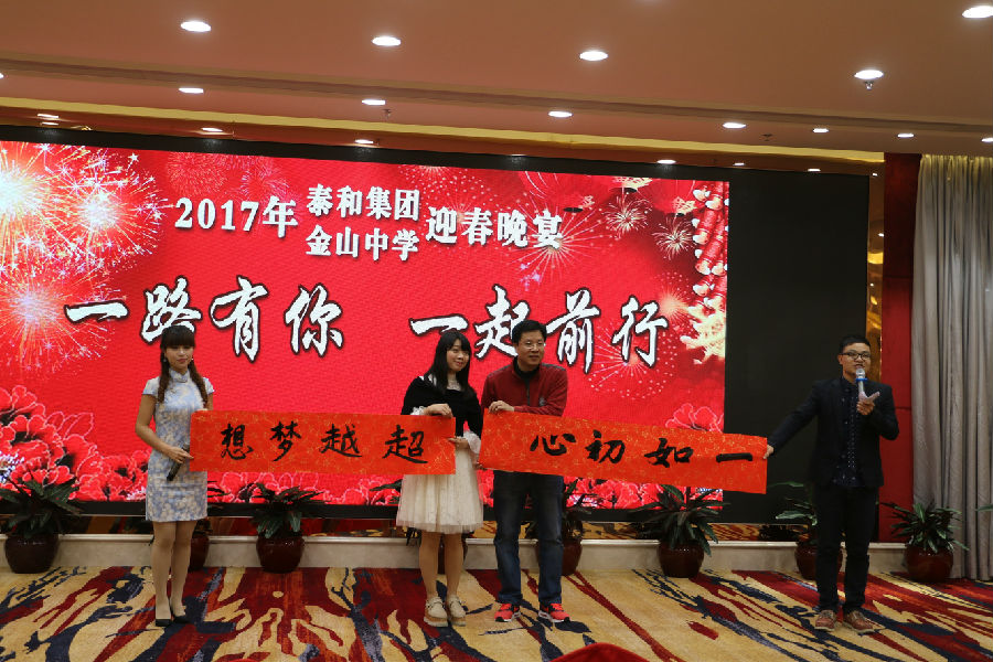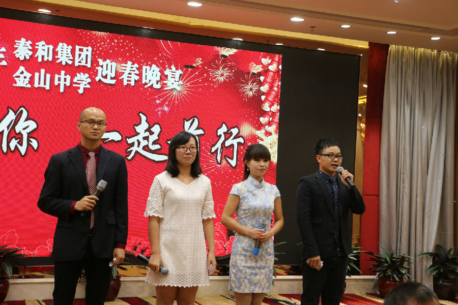 “雄雞喜唱升平日,志士歡歌幸福年。”1月15日晚上,廣東省泰和集團在開平市潭江半島酒店三樓國際會議廳隆重舉辦以“一路有你,一起前行”為主題的2017年泰和集團、金山中學迎春晚宴。泰和集團全體員工、金山中學全體教職工和社會各界熱心人士、企業家等近500人參加宴會,共賀即將到來的雞年新春。