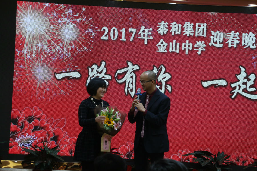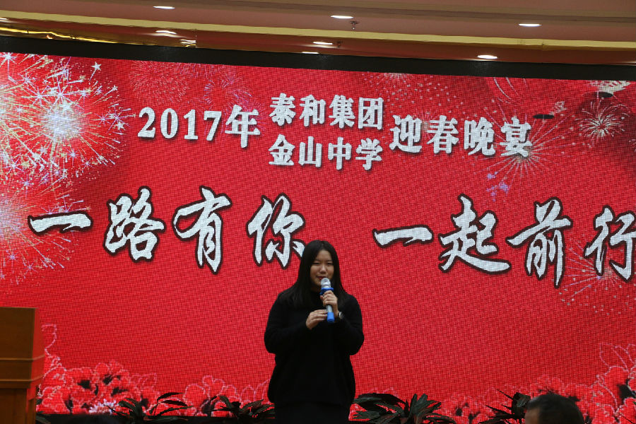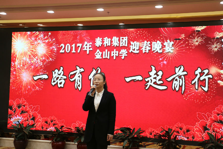泰和集團董事、總經理吳艷萍發表了熱情洋溢的講話, 她肯定了泰和集團和金山中學的成績,并希望大家在新的一年,同心協力,積極工作,再接再厲,勇攀高峰。