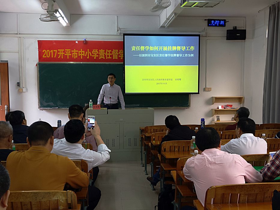 2017年11月16日至11月18日,開平市教育局組織46位督學到肇慶學院舉辦責任督學掛牌督導創新培訓班。開平市教育局副局長雷惠強、教育工會主席甄新強、督導室主任謝素彥參加此次培訓學習。