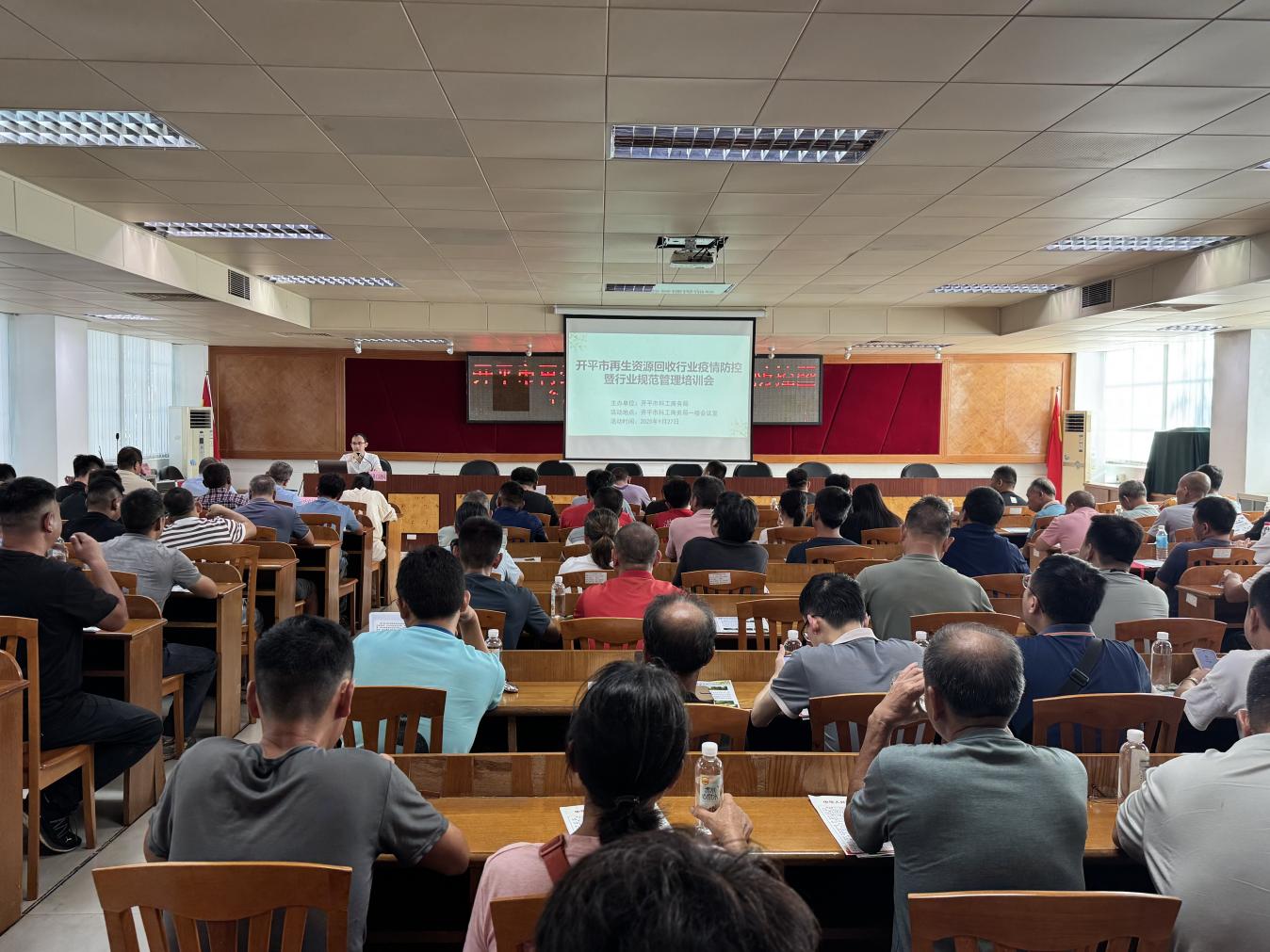 為積極應(yīng)對當(dāng)前基孔肯雅熱疫情防控形勢,提升行業(yè)規(guī)范化管理水平,開平市科工商務(wù)局多渠道做好防疫知識培訓(xùn)宣傳。一是開展疫情防控培訓(xùn)會。9月27日,開平市科工商務(wù)局聯(lián)合公安、衛(wèi)生健康、市場監(jiān)管、生態(tài)環(huán)境等部門召開開平市再生資源回收行業(yè)疫情防控暨行業(yè)規(guī)范管理培訓(xùn)會,覆蓋120多家企業(yè)及個體戶。培訓(xùn)會上,衛(wèi)生健康部門講解基孔肯雅熱、登革熱等蚊媒傳染病的傳播機(jī)理和防控要點(diǎn),結(jié)合再生資源回收站點(diǎn)易積水、多雜物等特點(diǎn),講解個人防護(hù)、環(huán)境消殺等關(guān)鍵環(huán)節(jié)的操作規(guī)范。在規(guī)范行業(yè)管理方面,科工商務(wù)、公安、市場監(jiān)管、生態(tài)環(huán)境等部門分別圍繞再生資源回收管理辦法、營業(yè)執(zhí)照辦理、計(jì)量器具檢測、叉車等特種設(shè)備使用、廢舊金屬回收管理和危廢、固廢等環(huán)境污染防治等內(nèi)容進(jìn)行詳細(xì)解讀。要求各站點(diǎn)嚴(yán)格落實(shí)經(jīng)營場地和從業(yè)人員日常管理,按要求健全管理制度、配備消防設(shè)施、加強(qiáng)環(huán)保措施等,強(qiáng)化站點(diǎn)的規(guī)范經(jīng)營。二是多渠道宣傳防疫知識。通過組建再生資源經(jīng)營主體微信工作群,每天發(fā)送有關(guān)基孔肯雅熱防控知識和防疫注意事項(xiàng)及要求,要求各經(jīng)營主體嚴(yán)格落實(shí)經(jīng)營場地和從業(yè)人員疫情防控管理,提高防范意識;通過面對面發(fā)放防疫宣傳單、張貼防疫海報(bào),講解最新防疫政策與企業(yè)防護(hù)要點(diǎn)等方式,對多家再生資源回收站點(diǎn)開展精準(zhǔn)化的防疫知識普及活動,累計(jì)派發(fā)防疫宣傳資料超600張。