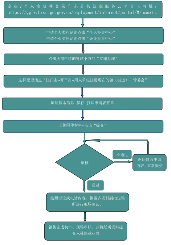 5. 為進一步精簡申請材料,人力資源社會保障部門通過“江門市就業實名制信息系統”對申請人的身份情況、用人單位登記注冊情況、企業類型、用工備案等信息進行核查。上述對應的申請材料不再需要提供。