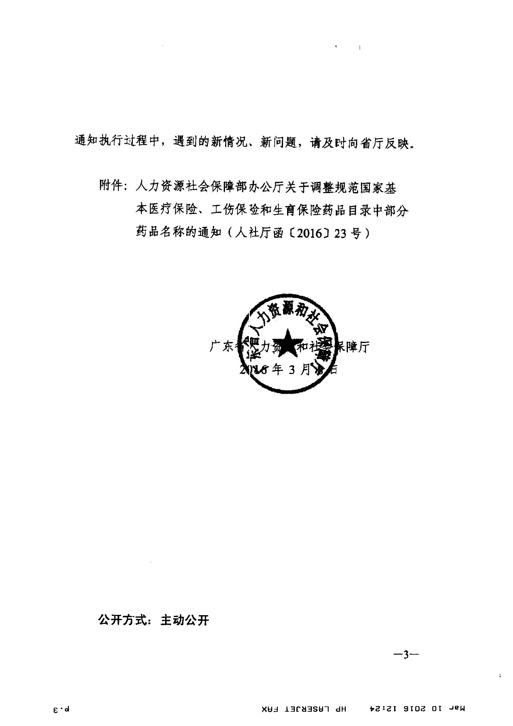 現將省人力資源社會保障廳《關于調整規范我省基本醫療保險、工傷保險和生育保險藥品目錄中部分藥品名稱的通知》(粵人社函〔2016〕573號)轉發給你們,請遵照執行。