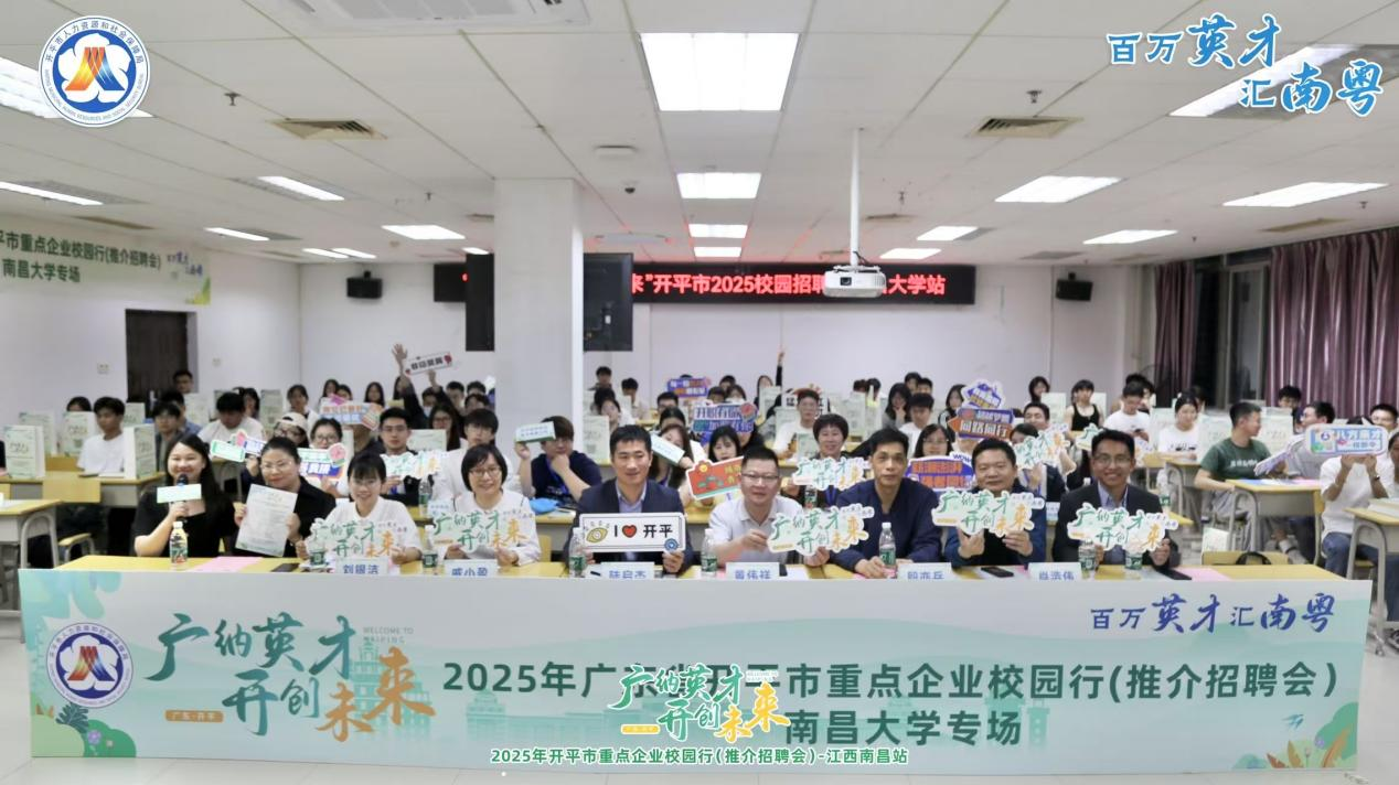 為深入貫徹落實廣東省“百萬英才匯南粵”行動計劃,近日,開平市組織市內10家重點企事業單位赴江西省南昌大學、南昌工程學院、江西師范大學開展“廣納英才 開創未來” ——2025年開平市重點企業校園行推介招聘會,深入開展校地合作,吸引優秀高校畢業生到開平就業創業。