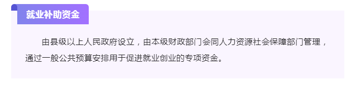 用于職業培訓補貼、職業技能評價補貼、就業見習補貼、一次性求職補貼、一次性創業補貼、社會保險補貼、公益性崗位補貼及其他支出;
