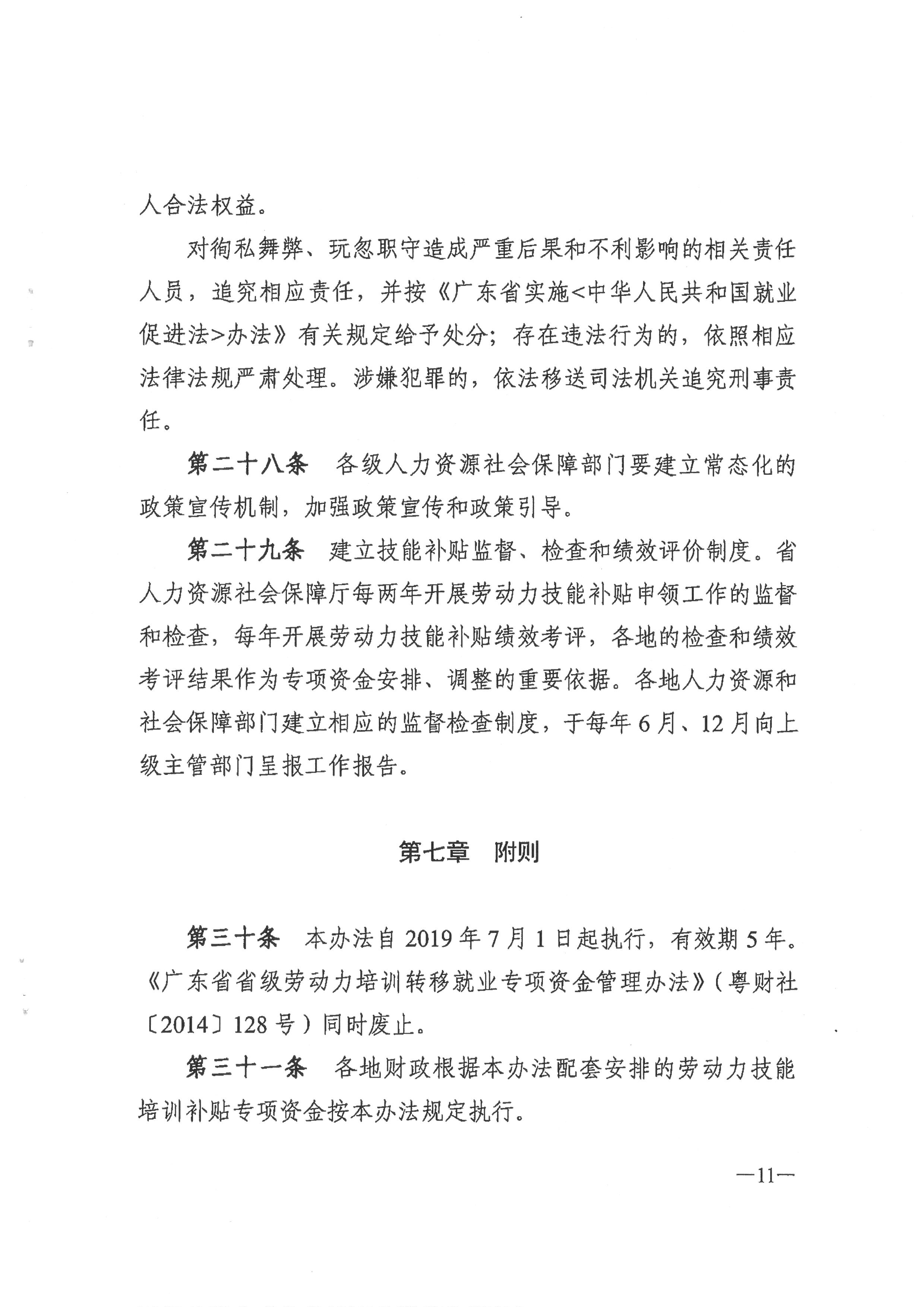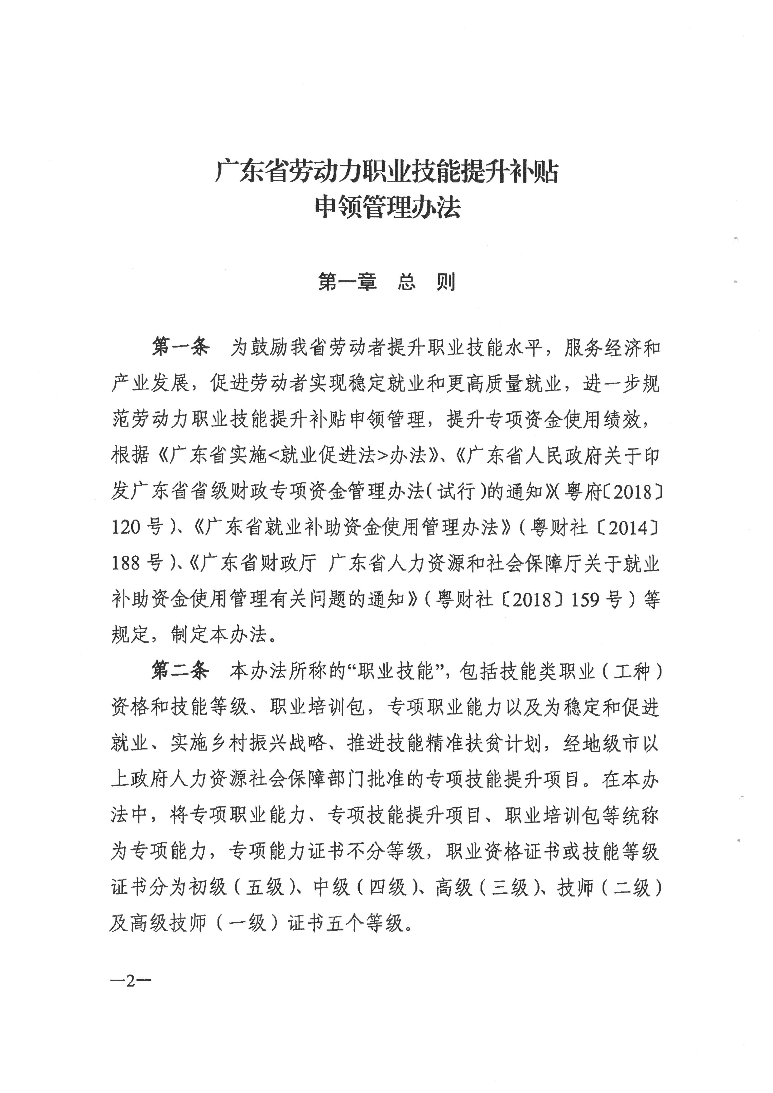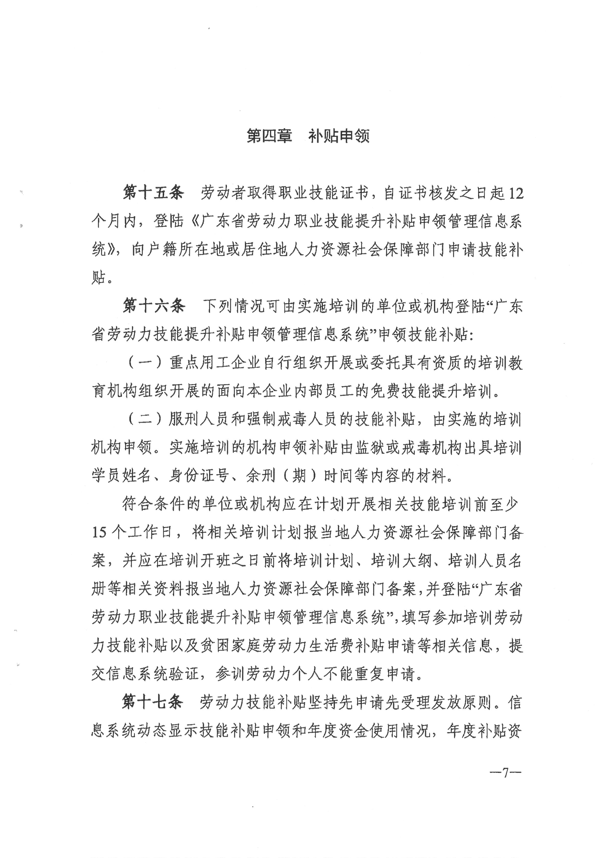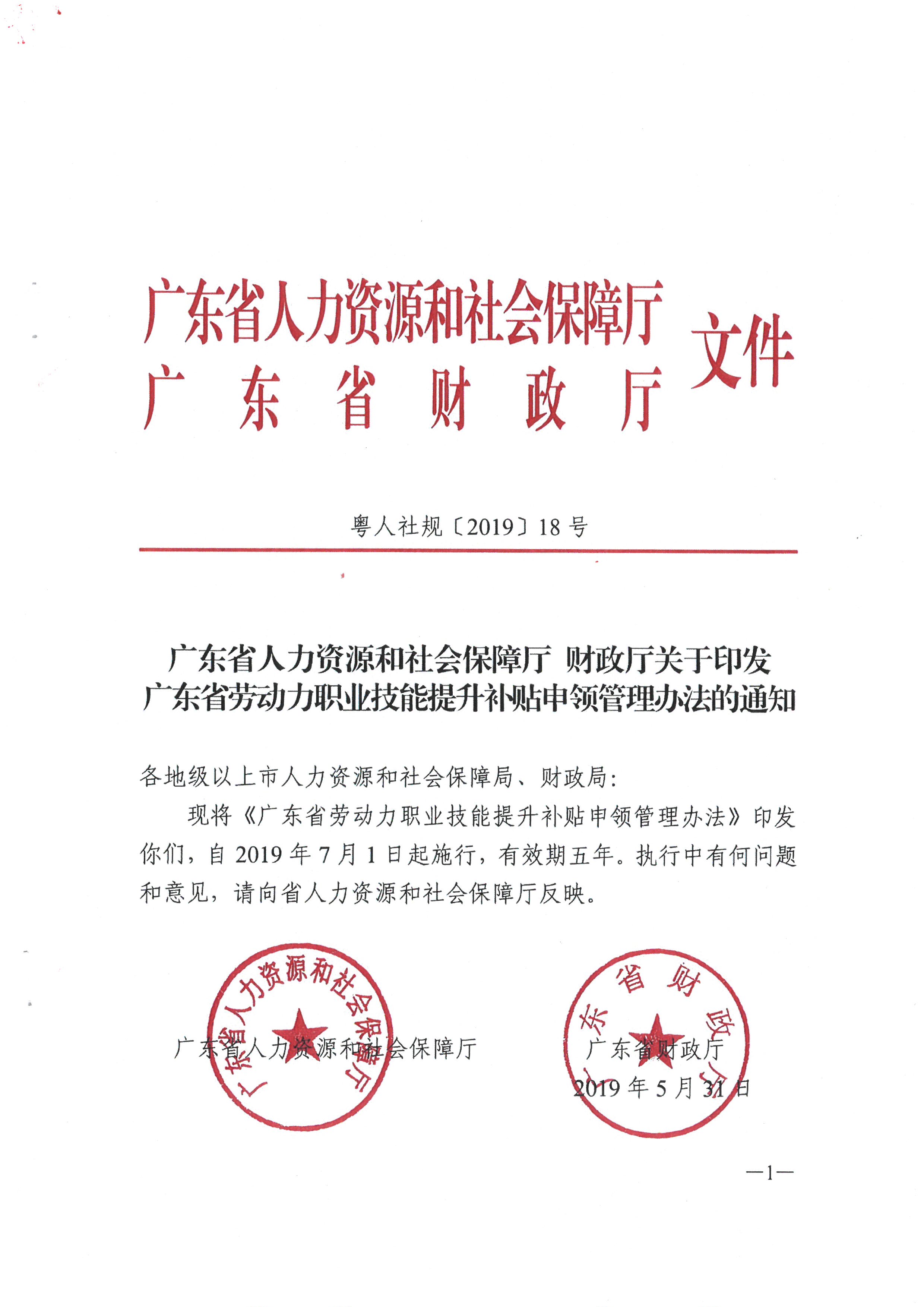 廣東省人力資源和社會保障廳 財政廳關于印發廣東省勞動力職業技能提升補貼申領管理辦法的通知(粵人社規[2019] 18號)