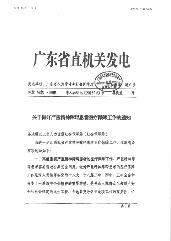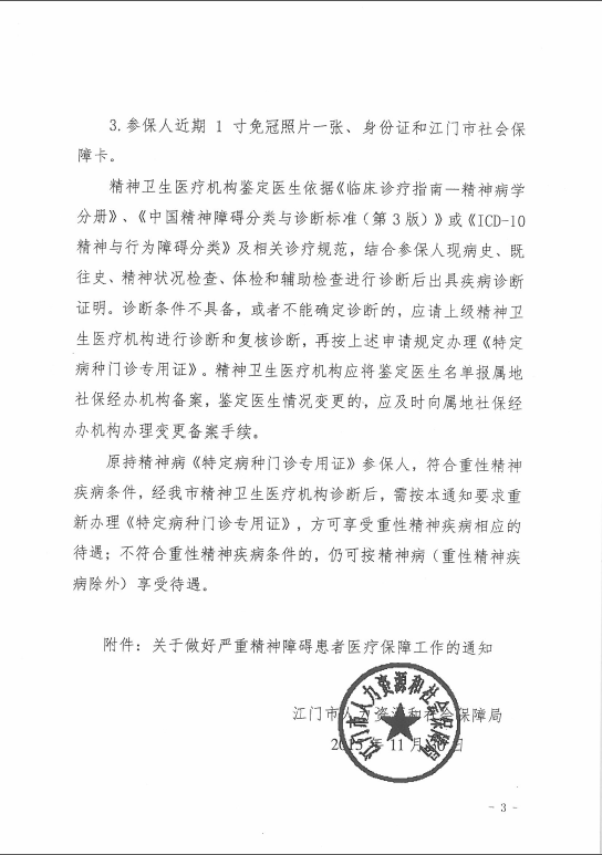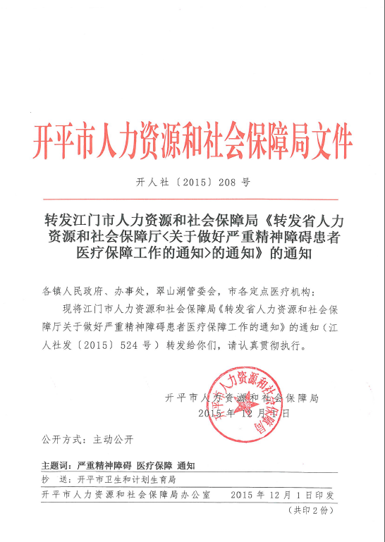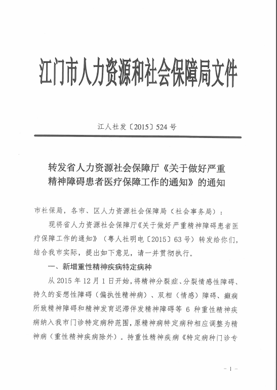 轉(zhuǎn)發(fā)江門市人力資源和社會(huì)保障局《轉(zhuǎn)發(fā)省人力資源和社會(huì)保障廳《關(guān)于做好嚴(yán)重精神障礙患者醫(yī)療保障工作的通知》的通知》的通知