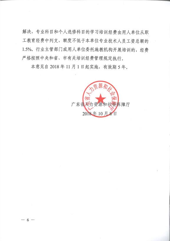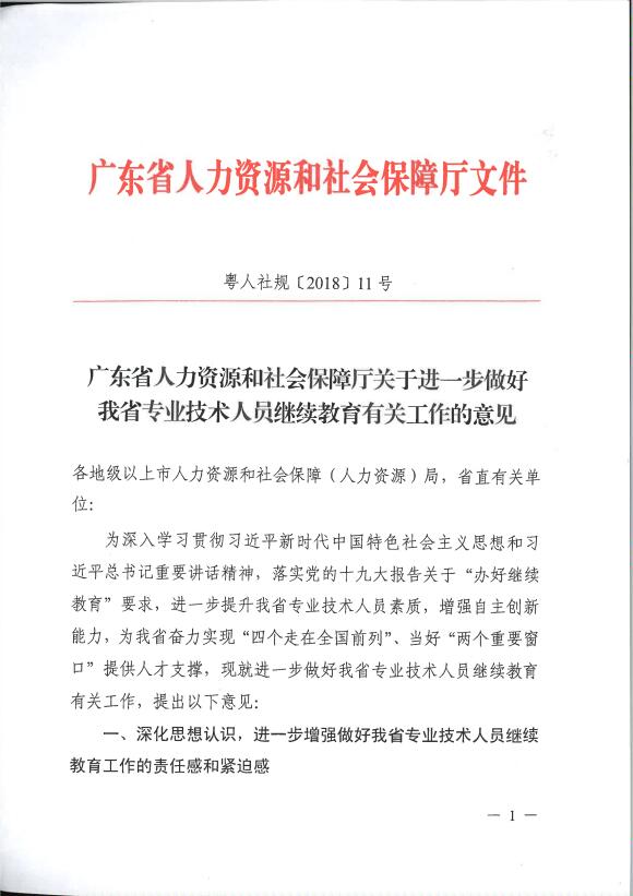 關于進一步做好我省專業技術人員繼續教育有關工作的意見(粵人社規[2018]11號)