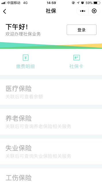一、通過(guò)微信搜索“粵省事”,找到小程序并點(diǎn)擊進(jìn)入主界面。點(diǎn)擊“社保”欄目,進(jìn)入相應(yīng)的界面,可以看到“醫(yī)療保險(xiǎn)”、“養(yǎng)老保險(xiǎn)”等情況,如果沒(méi)有登錄的則需要先實(shí)名制登錄進(jìn)去才能查看。