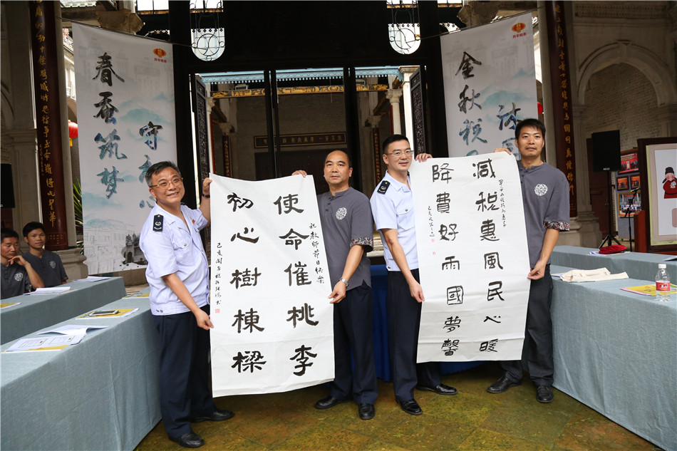 授課后,市稅務局和風采中學代表還現場揮毫,互贈墨寶。