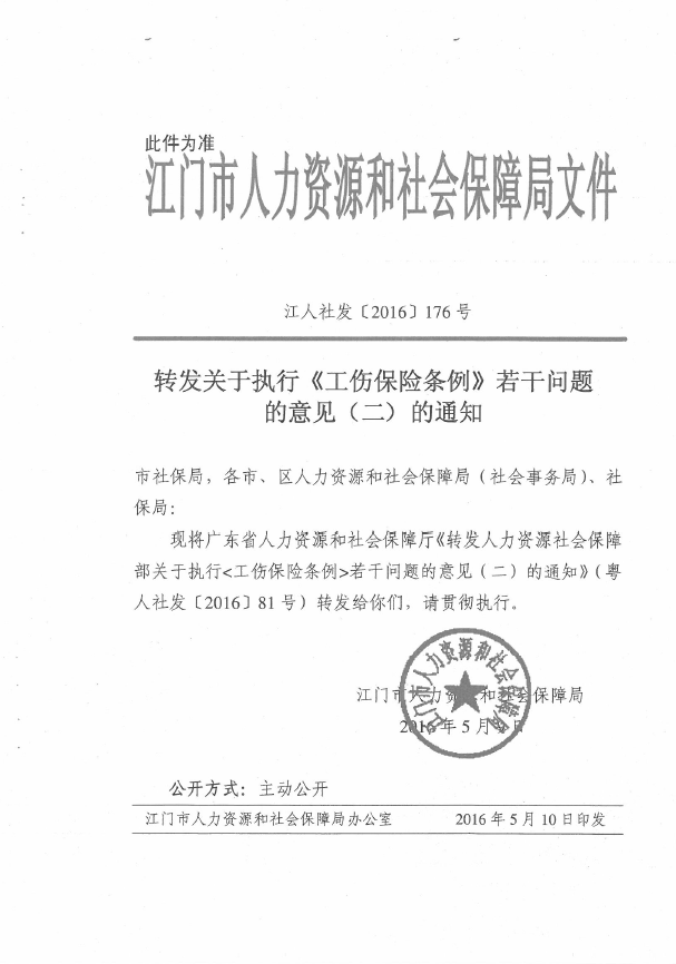 轉發關于執行《工傷保險條例》若干問題的意見(二)的通知