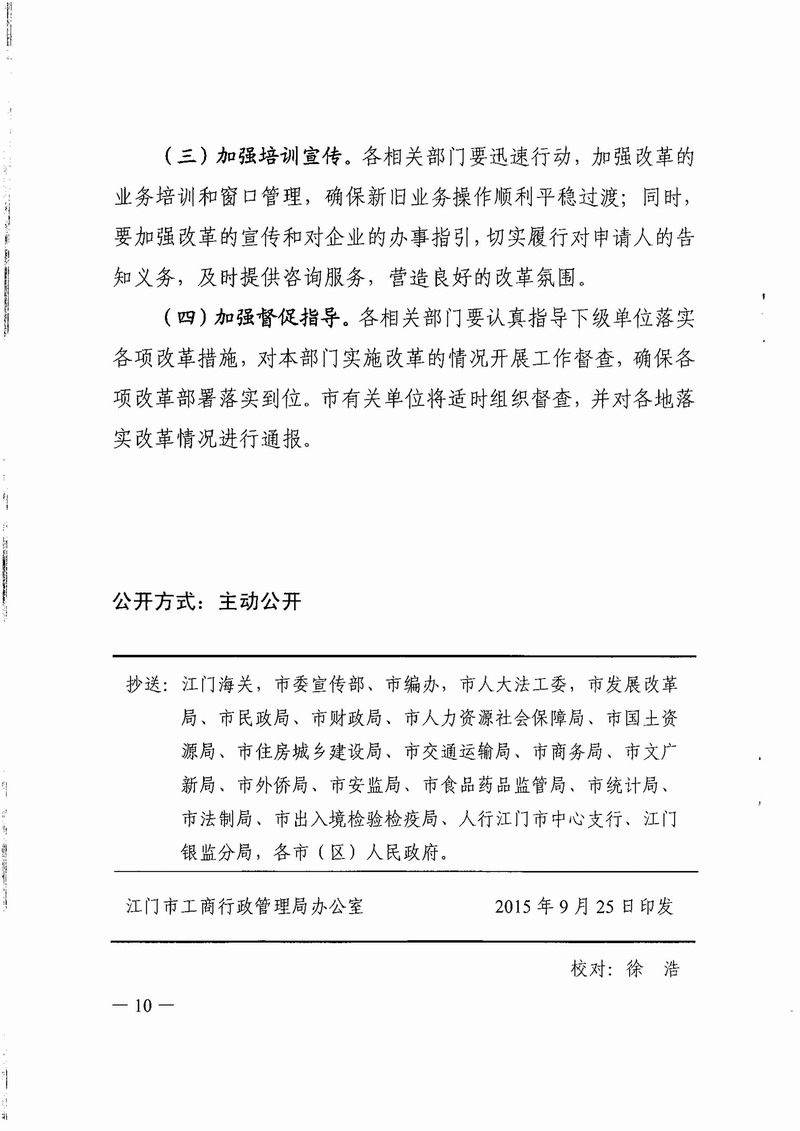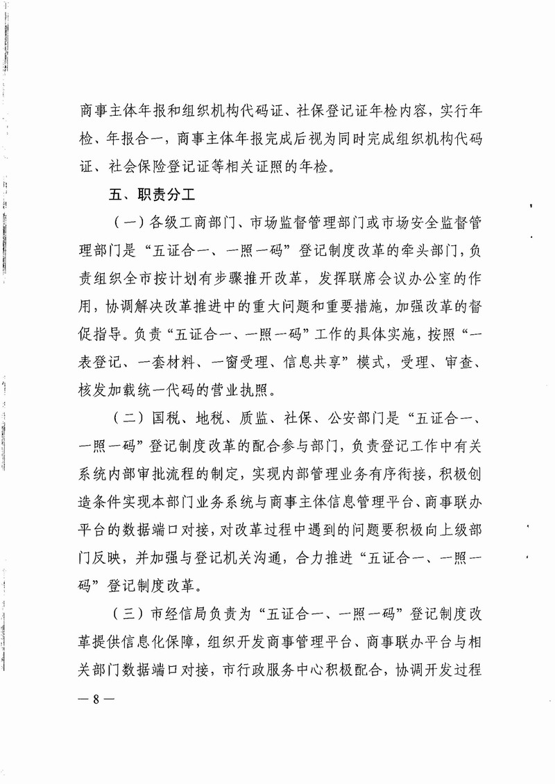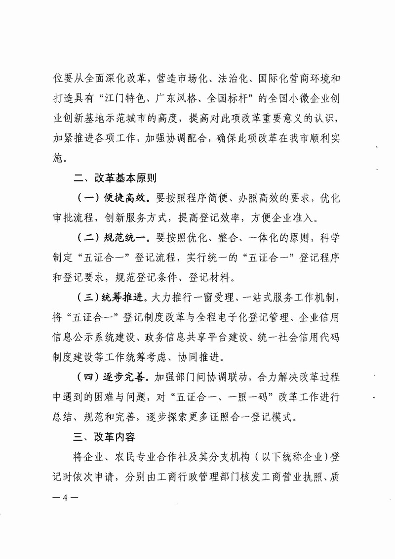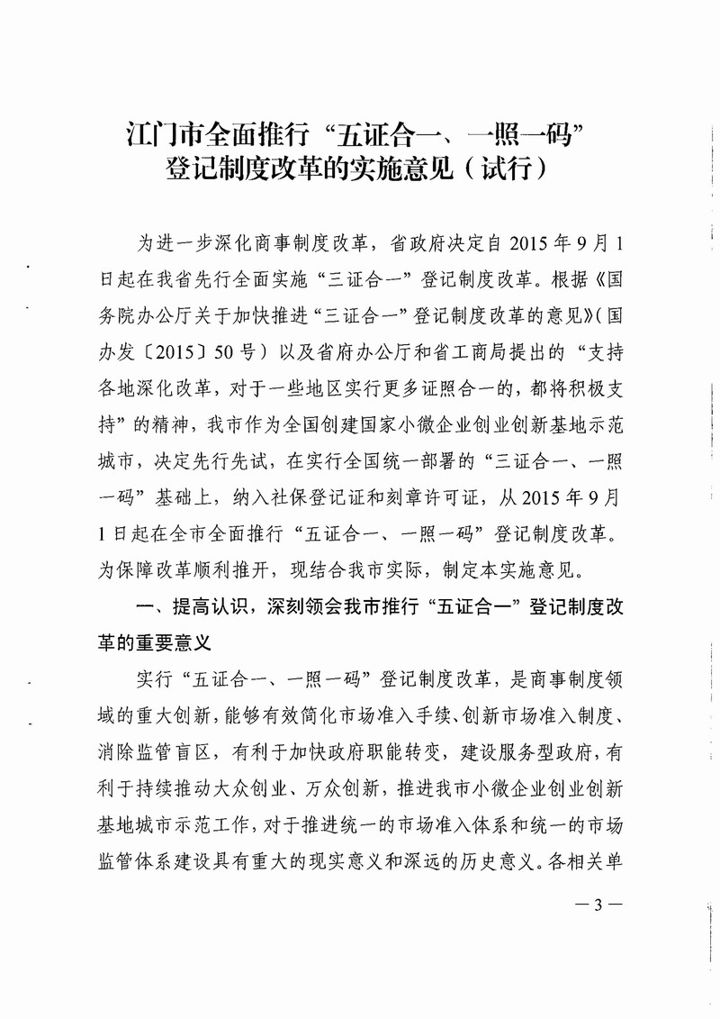 江門市工商局等八部門關于印發江門市全面推行“五證合一、一照一碼”登記制度改革的實施意見(試行)的通知