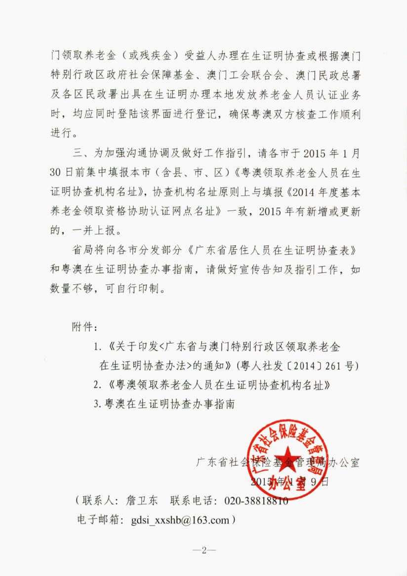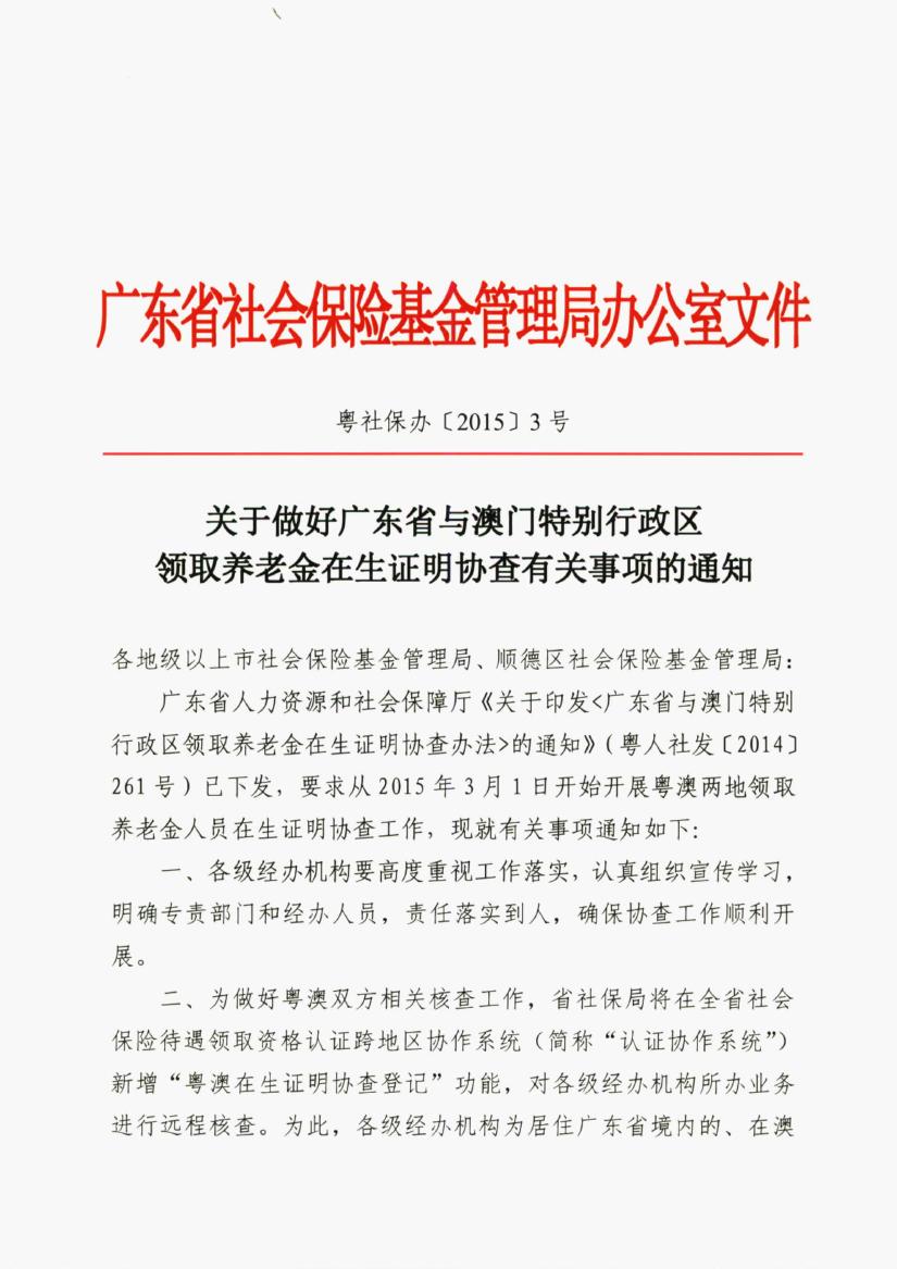 關于做好廣東省與澳門特別行政區領取養老金在生證明協查有關事項的通知