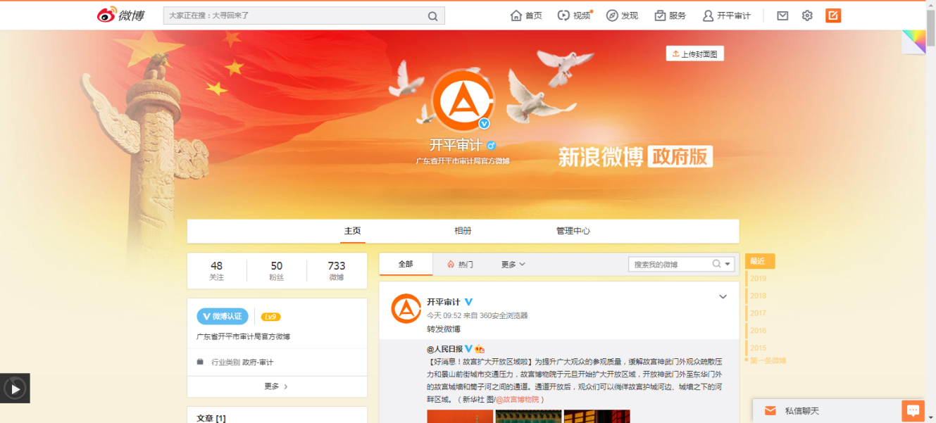 “開平審計”官方微博共發布微博200條。