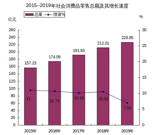 二、農業 全年實現農業總產值65.04億元,比上年增長5.84%。全年糧食作物播種面積63.27萬畝,比上年增長0.16%。其中:水稻種植面積58.18萬畝,比上年下降0.89%。 全年糧食總產量(折糧)21.13萬噸,與上年持平,其中:稻谷19.85萬噸,比上年下降0.90%。 圖2: 全市更新造林面積5.71萬畝,比上年下降26.79%;木材砍伐19.44萬立方米,比上年下降5.81%。 畜牧業肉類總產量9.47萬噸,比上年下降16.86%;全年生豬出欄量60.98萬頭,比上年增長5.94%;家禽出欄量3415.15萬只,比上年增長9.38%;禽蛋全年總產量1.1萬噸,比上年下降0.90%;水產品產量5.3萬噸,比上年增長5.16%。 三、工業和建筑業 2019年,全市規模以上工業企業309家,規模以上工業增加值比上年下降16.20%,工業總產值比上年下降16.03%。工業總產值中,按輕重工分:輕工業下降19.15%,重工業下降11.62%;按企業經濟類型分:外商及港澳臺商投資企業下降5.16%,股份制企業下降27.90%,其他經濟類型下降5.80%。 圖3: 全年規模以上工業企業銷售產值比上年下降17.63%,產品銷售率92.72%,主營業務收入比上年下降19.38%,利潤總額比上年下降7.57%。 全年具有資質等級的總承包和專業承包建筑企業完成總產值191.42億元,比上年增長0.01%。主營業務收入164.13億元,比上年下降7.74%。實現利潤總額4.95億元,比上年增長17.86%。 四、固定資產投資 全年固定資產投資比上年下降7.4%。其中:房地產投資比上年增長80.30%。固定資產投資中,第一產業投資比上年增長18.54%;第二產業投資比上年下降27.18%;第三產業投資比上年增長8.46%。全年民資投資比上年下降5.77%。 全年商品房施工面積494.97萬平方米,比上年增長32.24%;竣工面積32.53萬平方米,比上年增長15.51%;商品房銷售面積87.91萬平方米,比上年增長9.64%;商品房銷售額61.8億元,比上年增長10.82%。 五、交通運輸和郵電業 全年社會客運量3158.8萬人,比上年下降6.67%;客運周轉量64767.3萬人公里,比上年下降16.24%;港口貨物吞吐量458.17萬噸,比上年下降64.12%。 年末市內公路通車里程1609.3公里。汽車保有量12.50萬輛,比上年增長7.52%。摩托車保有量16.39萬輛,比上年下降34.27%。公共汽車擁有量259輛。 年末固定電話用戶10.15萬戶,移動電話用戶79.74萬戶。 六、國內貿易 全年社會消費品零售總額226.85億元,比上年增長7.00%。按行業分,批發和零售業實現零售額202.40億元,比上年增長7.00%;住宿和餐飲業實現零售額24.45億元,比上年增長6.97%。其中:限額以上貿易企業實現零售額43.27億元,比上年下降7.33%。 圖4: 七、對外經濟貿易和旅游業 全年海關進出口總值152.6億元,比上年下降8.6%。外貿出口總值128.8億元,比上年下降4.7%。進口總值23.7億元,比上年下降25.4%。實現對外貿易順差105.1億元。 全年新批設立外商直接投資企業28家,同比增加7家;外商投資增資企業9家次,比去年減少1家次。合同外資金額0.65億美元,比上年增長226.95%。實際吸收外商金額0.51億美元,比上年增長7.56%。外向型企業325家,其中:三資企業311家,來料加工企業14家。 全年旅游業共接待國內外游客865.56萬人次,比上年增長12.88%,其中:國內旅游者737.53萬人次,比上年增長11.96%;國際旅游者128.03萬人次,比上年增長18.46%;實現旅游總收入111.45億元,比上年增長21.11%。全市擁有星級酒店2家,其中:五星級酒店1家,三星級1家。旅游飯店出租率65.65%。 八、財政金融 全年地方公共財政預算收入27.95億元,比上年增長7.17%;地方公共財政預算支出51.16億元,比上年增長29.86%。 年末金融機構存款余額661.83億元,比上年增長9.01%。其中:城鄉居民儲蓄存款余額470.98億元,比上年增長9.13%。各項貸款余額402.58億元,比上年增長16.37%。僑匯收入0.26億美元,比上年下降27.22%。 九、科學技術和教育 全年專利申請量2460件,專利授權量1713件。國家級高新技術企業132家。全市工程技術研究中心省級有49家、地市級有184家。全市擁有各類專業技術人員2.85萬人。 年末全市有中小學91所,其中完(高、職)中10所,初中19所,小學58所,九年一貫制學校4所,全市在校生共124043人,其中小學生55337人,初中生23992人,高中階段在校生19516人。特殊學校1所,在校生135人。開放大學1所,在校本科生285人,大專學生848人。幼兒園100所,在園兒童25063人。小學適齡兒童入學率100%,小學畢業生入學率100%,非正常流動率為0%;15周歲人口初等教育完成率100%,與上年持平;17周歲人口中等教育完成率99.78%,比上年提高0.02個百分點。初中入學率100%,與上年持平;非正常流動率0.51%,比上年提高0.03個百分點。三類殘疾兒童少年入學率100%,與上年持平?!捌站拧蔽迓蔬B續30年達到國家和省規定的標準要求。全市初中畢業生7714人,升學率為99.52%,比上年下降0.48個百分點,完成江門市下達的“普高”指標。全市參加高考人數5765人,入圍人數5404人,其中本科入圍人數3137人;報考入圍率達93.73%,其中本科入圍率達54.41%。全年投入3318.4萬元,新建、擴建、改建校舍1.43萬平方米。 十、文化、衛生和體育 年末全市有文化館1間;文化站15個,村文化室269個;博物館1間;美術館1間;圖書館21間,圖書總藏書量186萬冊,其中:鎮圖書館藏書量37萬冊;市(鎮)影劇院6座。廣播電視臺1間,有線電視轉播頻道154個,廣播電臺播出頻道1個。 年末擁有衛生機構25個。其中:醫院6家,衛生院14家;婦幼保健院1家;??品乐嗡?、站2家;疾病預防控制中心1個;衛生監督所1家。病床床位2901張,其中:醫院2415張,衛生院336張。衛生技術人員3292人,其中:醫生1096人,衛生防疫