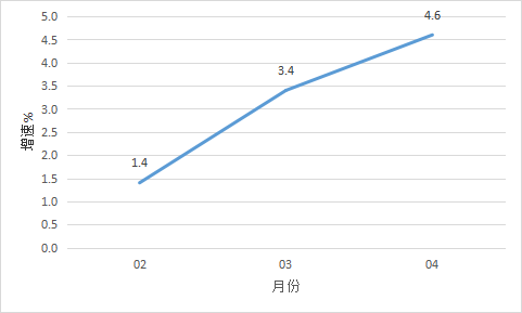 1-4月開平市經濟運行簡況 1-4月,全市主要經濟指標運行簡況如下: 一、工業生產 1-4月,開平規模以上工業企業累計完成工業增加值40.38億元,同比增長4.6%。 分經濟類型看,股份制企業增長11.8%;外商及港澳臺商投資企業下降1.9%;私營企業增長8.6%。分門類看,采礦業增加值下降29.5%,制造業增加值增長3.4%,電力、熱力、燃氣及水生產和供應業增加值增長103.1%。 圖一 2024年2月以來開平市規模以上工業增加值增速 二、投資 1-4月,全市完成固定資產投資同比增長12.0%。分經濟類型看,國有投資下降4.5%;民間投資增長1.2%。分產業看,第一產業投資下降61.8%;第二產業投資增長11.9%,其中工業投資增長11.9%;第三產業投資增長13.7%,其中房地產投資下降8.2%。 三、消費市場 1-4月,我市完成社會消費品零售總額59.03億元,同比增長3.3%。 圖二 2024年2月以來開平市社會消費品零售總額增速 四、財政收入 1-4月,全市實現地方一般公共預算收入9.97億元,同比增長0.5%,其中稅收收入5.52億元,同比下降9.5%。 五、金融市場 4月末,全市金融機構本外幣各項存款余額946.05億元,同比增長6.4%;本外幣各項貸款余額699.19億元,同比增長14.5%。 六、外貿進出口 1-4月,全市外貿進出口總額49.8億元,同比增長4.7%。其中,進口4.4億元,同比增長6.1%;出口45.4億元,同比增長4.6%。