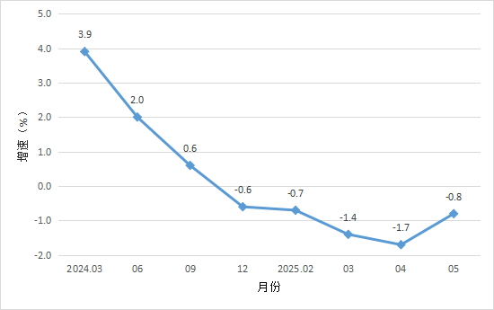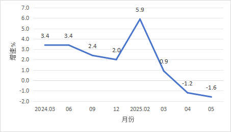 2024年3月以來開平市規模以上工業增加值增速 二、投資 1-5月,全市固定資產完成投資同比下降26.6%。分經濟類型看,國有投資下降15.7%;港澳臺和外商投資增長3.4%;民間投資下降22.7%。 三、消費市場 1-5月,我市完成社會消費品零售總額68.88億元,同比下降0.8%。 圖2