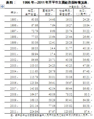 地區(qū)生產(chǎn)總值是按市場(chǎng)價(jià)格計(jì)算的一個(gè)地區(qū)所有常住單位在一定時(shí)期內(nèi)生產(chǎn)活動(dòng)的最終成果,也即是各產(chǎn)業(yè)增加值之和。它全面反映經(jīng)濟(jì)整體情況,是整個(gè)宏觀經(jīng)濟(jì)分析中的核心指標(biāo)。本文將圍繞開平市生產(chǎn)總值在改革開放以來的發(fā)展情況,從不同的方面進(jìn)行分析研究。 (二)人均地區(qū)生產(chǎn)總值穩(wěn)步增長(zhǎng) 二、經(jīng)濟(jì)發(fā)展經(jīng)歷了四個(gè)經(jīng)濟(jì)周期 第一個(gè)周期(1979—1983年):用時(shí)5年,地區(qū)生產(chǎn)總值年均增長(zhǎng)10.14%。1981年達(dá)到峰值18.23%,然后開始下滑至1983年的谷位完成我市改革開放以來的第一個(gè)經(jīng)濟(jì)周期。這一周期的持續(xù)時(shí)間與廣東省及江門市的時(shí)間大致一致。波動(dòng)幅度為16.69個(gè)百分點(diǎn),比江門市波幅大9.89個(gè)百分點(diǎn)、比廣東省波幅大1.09個(gè)百分點(diǎn)。 通過與省、地市經(jīng)濟(jì)周期的對(duì)比發(fā)現(xiàn),我市各經(jīng)濟(jì)周期的波動(dòng)跟隨著省、江門市的經(jīng)濟(jì)周期波動(dòng)趨勢(shì)發(fā)展,而且表現(xiàn)更為強(qiáng)烈。我市經(jīng)濟(jì)周期發(fā)展的不對(duì)稱,表明我市經(jīng)濟(jì)的發(fā)展由前期基礎(chǔ)不穩(wěn),抗風(fēng)險(xiǎn)能力弱,對(duì)市場(chǎng)變動(dòng)反應(yīng)強(qiáng)烈。到后期進(jìn)入二十一世紀(jì)后,隨著全省整體經(jīng)濟(jì)發(fā)展的帶動(dòng)及內(nèi)生增長(zhǎng)動(dòng)力不斷增強(qiáng),經(jīng)濟(jì)發(fā)展的穩(wěn)定性逐步提高,跟省、地市經(jīng)濟(jì)的波動(dòng)差距大幅收窄。 (二)三次產(chǎn)業(yè)對(duì)經(jīng)濟(jì)增長(zhǎng)的彈性系數(shù) 用各產(chǎn)業(yè)的彈性系數(shù)均值進(jìn)行排位,分別是:第一產(chǎn)業(yè)是0.2689、第二產(chǎn)業(yè)1.1005、第三產(chǎn)業(yè)1.0984。以此得出:第二產(chǎn)業(yè)對(duì)地區(qū)生產(chǎn)總值的彈性最高,也就是地區(qū)生產(chǎn)總值的增長(zhǎng)對(duì)第二產(chǎn)業(yè)的增長(zhǎng)依存度最高,是拉動(dòng)我市經(jīng)濟(jì)增長(zhǎng)的主導(dǎo)產(chǎn)業(yè);其次是三產(chǎn)和一產(chǎn)。 (一)描繪相關(guān)圖。 (1)投資與地區(qū)生產(chǎn)總值的相關(guān)圖 (2)出口與地區(qū)生產(chǎn)總值的相關(guān)圖 根據(jù)三個(gè)相關(guān)圖的分布狀態(tài),作出以下判斷:1、三個(gè)圖表可以直觀地顯示出投資、出口和消費(fèi)與地區(qū)生產(chǎn)總值之間存在著相關(guān)關(guān)系。2、相關(guān)的形態(tài)。三個(gè)相關(guān)圖形上近似表現(xiàn)為一條直線的線性相關(guān)關(guān)系。3、相關(guān)的方向。因變量地區(qū)生產(chǎn)總值的數(shù)值變化與自變量投資、出口和消費(fèi)的數(shù)值隨之發(fā)生大致均等變化的正相關(guān)關(guān)系。相關(guān)分析的條件成立,進(jìn)行下一步的分析。 (二)按發(fā)展結(jié)構(gòu)對(duì)比。選取省內(nèi)縣級(jí)經(jīng)濟(jì)的三次產(chǎn)業(yè)結(jié)構(gòu)進(jìn)行地區(qū)間對(duì)比。根據(jù)產(chǎn)業(yè)結(jié)構(gòu)變遷理論,對(duì)第一產(chǎn)業(yè)按由小到大、對(duì)第二、三產(chǎn)業(yè)則按由大到小進(jìn)行排序。我市在省內(nèi)的排位情況是:一產(chǎn)前列、二產(chǎn)中上游及三產(chǎn)中下游的水平。主要情況是:在“十一五”期間,第一產(chǎn)業(yè)的排位較穩(wěn)定均在前十名,排在第7位;第二產(chǎn)業(yè)的排位上升6位排在第10位;第三產(chǎn)業(yè)則下跌24位,排在第41位。具體見表六: 六、發(fā)展建議