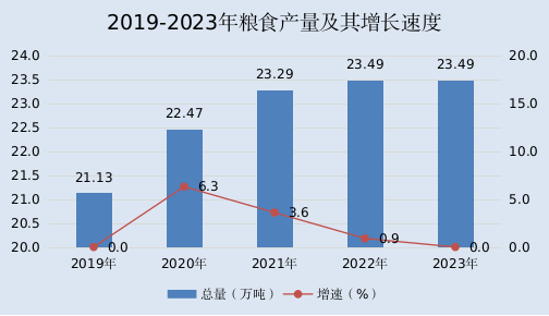 全年糧食總產量(折糧)23.49萬噸,與上年持平,其中:稻谷21.91萬噸,比上年下降0.1%