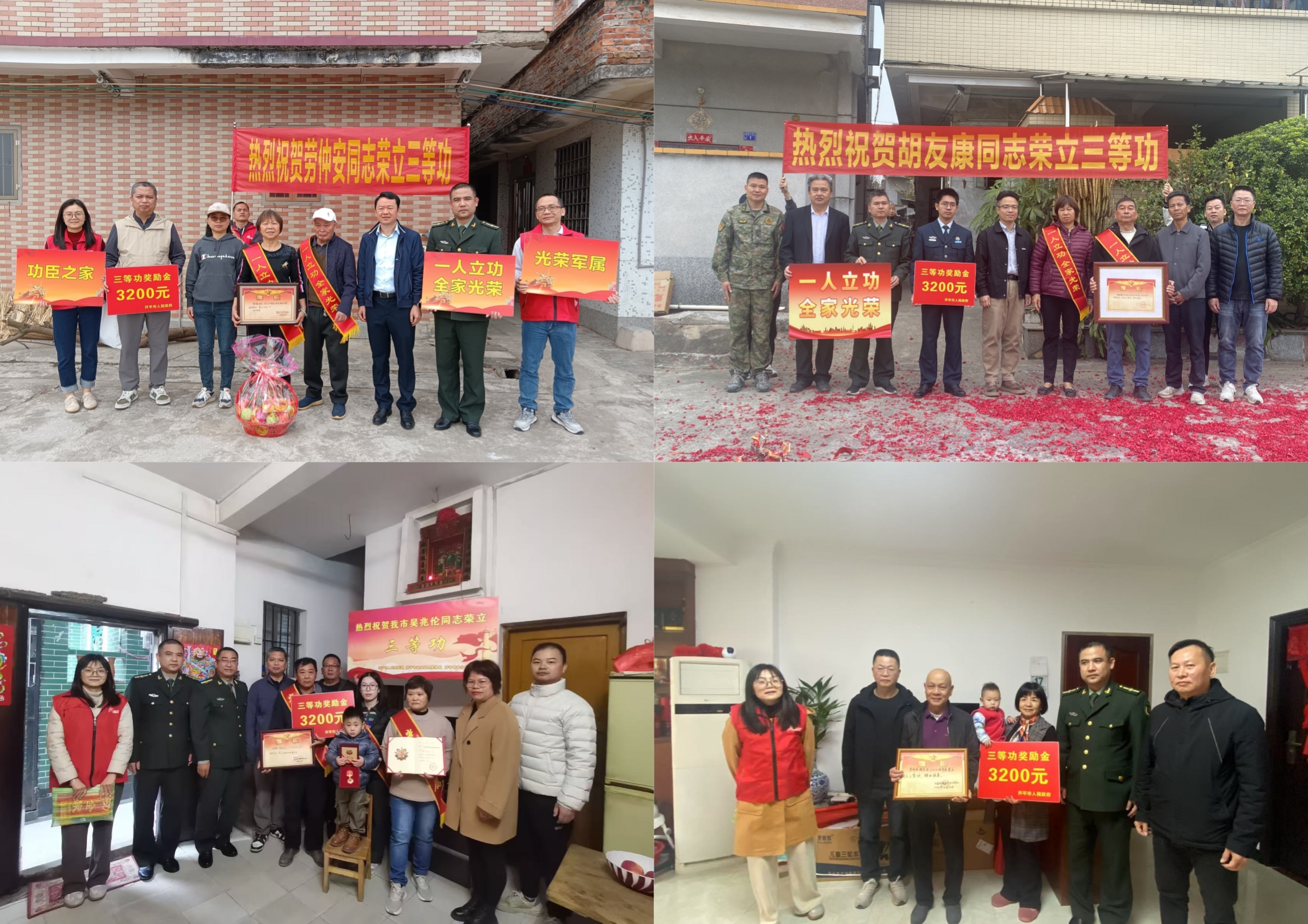 2024年度,開平籍現(xiàn)役軍人勞仲安、吳兆倫、胡友康、周展業(yè)、羅偉成、司徒和順,因在部隊(duì)表現(xiàn)突出,榮立個(gè)人三等功。近日,開平市退役軍人事務(wù)局、開平市人民武裝部和屬地武裝部及退役軍人服務(wù)站一行組成報(bào)喜團(tuán),分別為6名在部隊(duì)立功的現(xiàn)役軍人家庭送去喜報(bào)和慰問(wèn)金,以表彰他們?cè)趪?guó)防和軍隊(duì)建設(shè)中的突出貢獻(xiàn),同時(shí)向軍人家庭表達(dá)誠(chéng)摯的感謝和崇高的敬意。