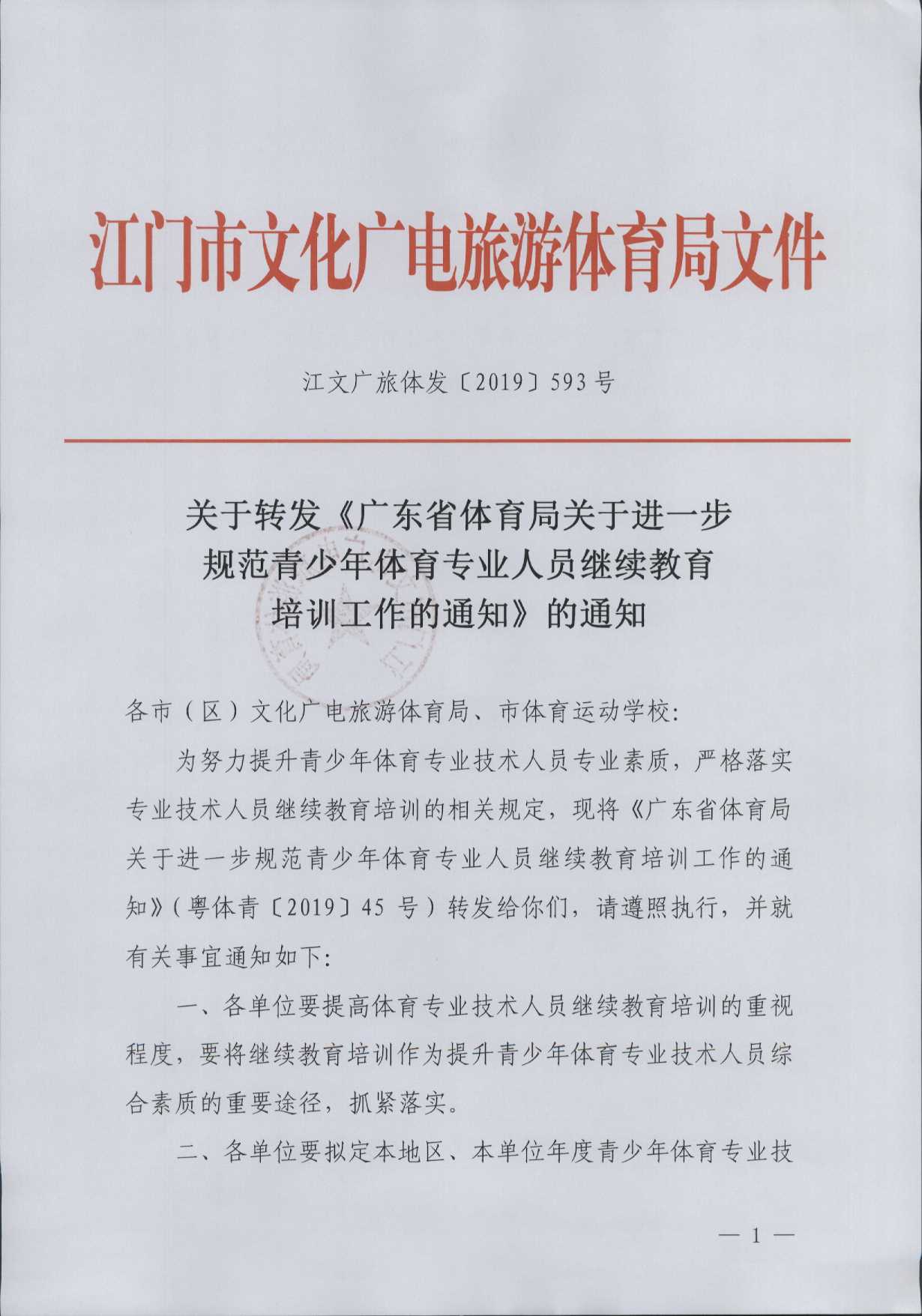 關于轉發《廣東省體育局關于進一步規范青少年體育專業人員繼續教育培訓工作的通知》的通知