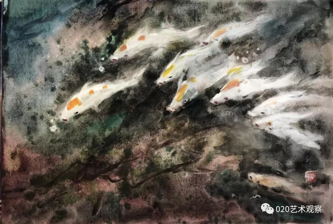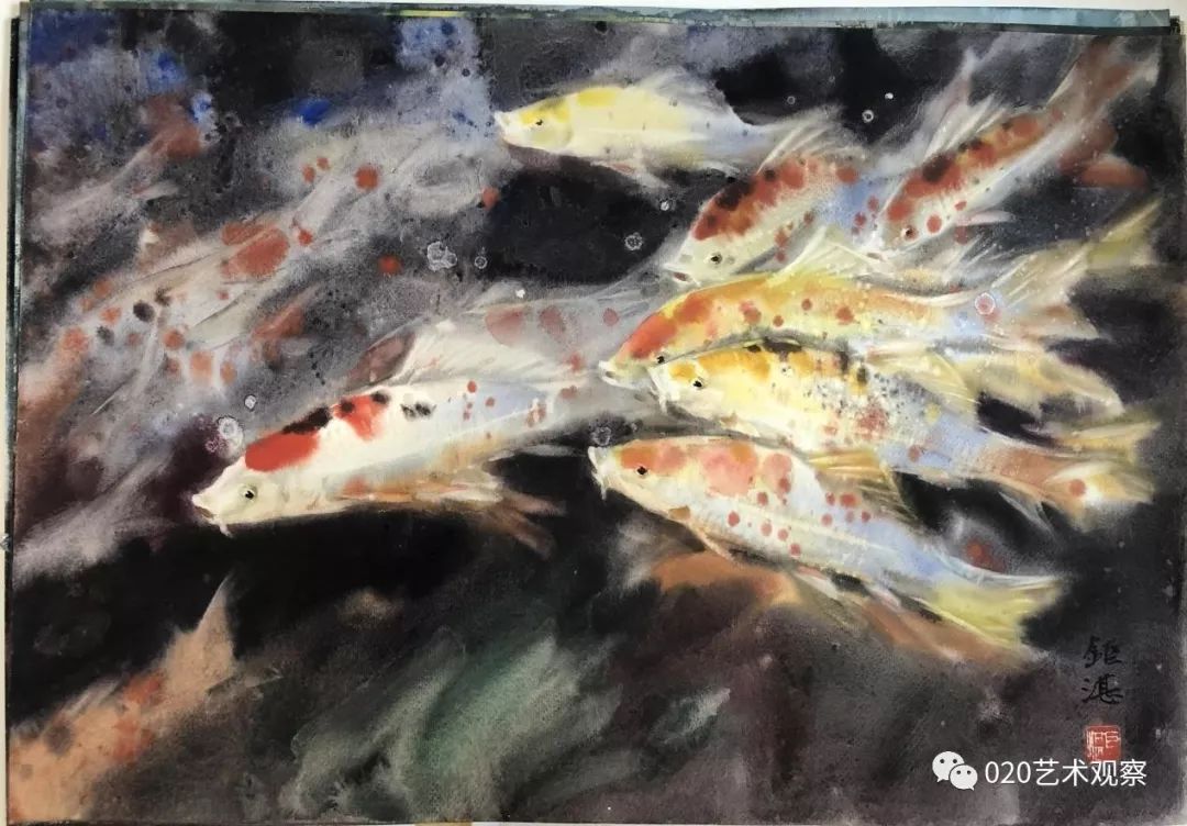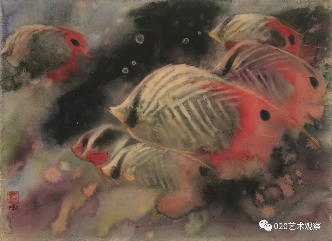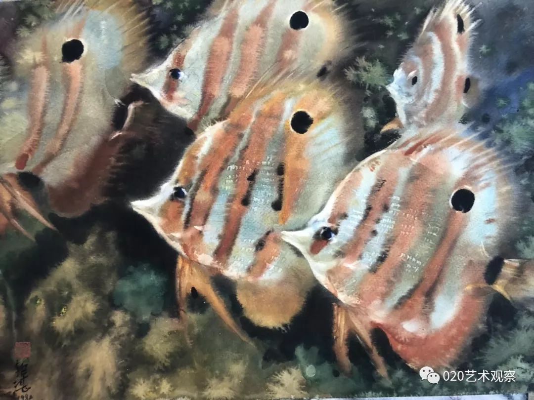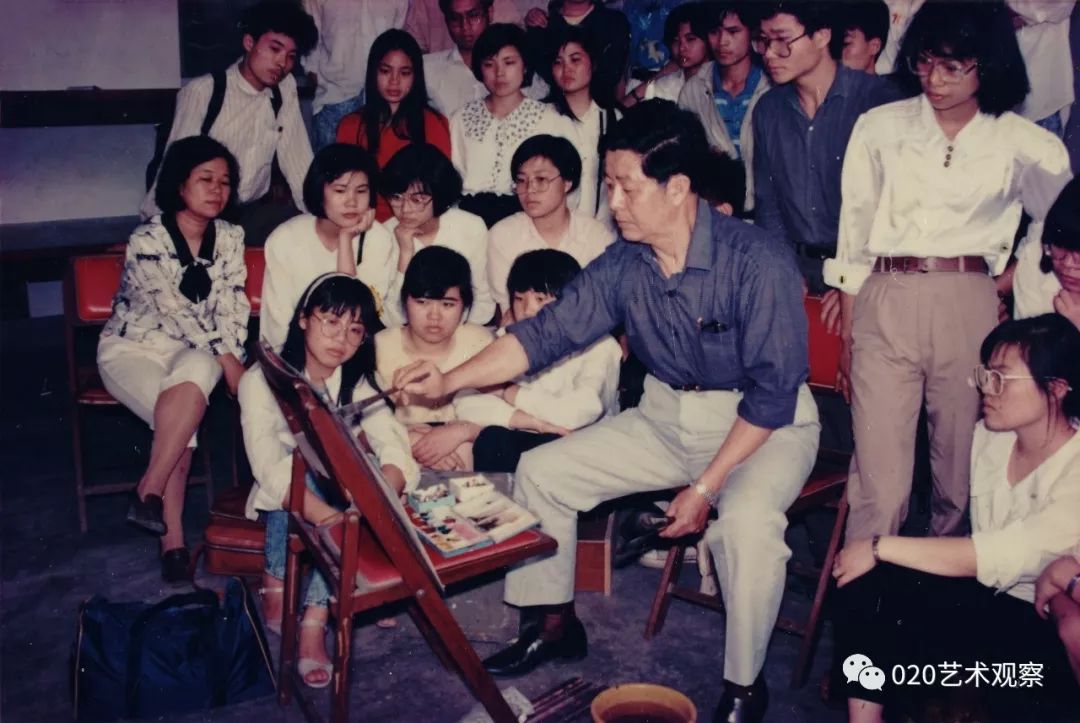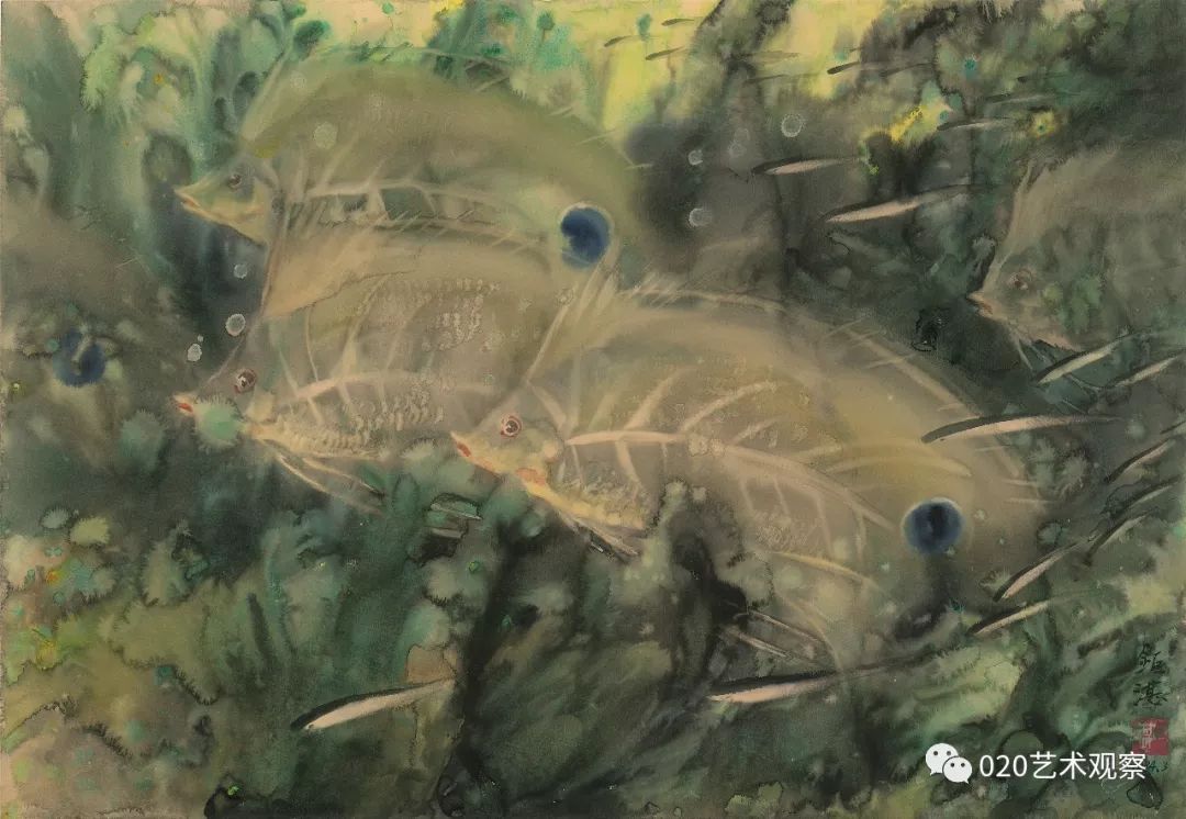 胡鉅湛,開平籍藝術家,擅長水彩畫、油畫。任教于廣州美術學院,曾任教育系主任、教授、碩士生導師,兼任廣東教育學院美術系主任、教授,為二系的創建人。中華人民共和國全國中、小學美術科教材審查委員會委員、中國美術家協會會員、廣東省文史館館員、廣東水彩畫藝術委員會副主任、廣東水彩畫研究會副會長等職。 胡鉅湛老師口述史采訪現場。龍成關攝 廣州美院“987口述史工程” 胡鉅湛老師訪談信息 受訪人:胡鉅湛老師(長子胡赤駿老師協助) 采訪時間:2018年6月12日 采訪地點:廣州美術學院胡鉅湛老師家中 采訪者:許俏文 攝像:文三原、龍成關、何銘迄 音視頻總時長:180分鐘 胡鉅湛老師與口述史采訪團隊合影。龍成關攝 胡鉅湛訪談文字摘錄 如何走上藝術道路? 我從小到大都是在玩的,畫畫也是在玩的。我感覺那個年代的年輕人跟現在不一樣,我們那個年代都是喜歡玩,現在是老師怎么講就怎么做,現在的要求太多。那個年代小孩都是在玩,那個魚、那個風景也是玩出來的。怎么讓它們動起來,就要有想象,這個不容易。(在開平一中的時候),(胡根天)是我的老師。我那個時候,在學習這個階段,沒有人教也沒有人說,我們都是自己動手動腳,自己在那里玩。我好多畫都是動手實踐出來的。如果搞不清楚、講不清楚就動起來,慢慢就能感覺到是這么回事。后來才學會畫畫的,這整個過程我都是玩過來的。 采訪中,胡鉅湛老師長子胡赤駿老師向采訪者展示胡赤駿早年學畫期間曾用過的水彩顏料。龍成關攝 (胡赤駿補充)他說的意思大概就是那個時候只有在真實的生活里面玩,才有那種體驗。他畫風景、畫魚,都是在玩。他的意思就是說要接觸真實的生活。 熱帶魚 水彩 39cm×54cm 1980年 “魚跟我們有感情” 我覺得魚跟我們有感情,魚可以幫我們想很多東西,魚動起來,很多變化是你想不到的。會引起共鳴,跟人的心有聯系。魚在水里玩啊玩啊,靠水來表現,水有多少,出來的效果都不一樣。魚比較活躍,容易表現出來。畫魚,有光線就顯得很豐富,好多人都體會不到。要掌握這個水的性能和光線,要做到心中有數,要讓水聽你的話,聽你“指揮”。我可以利用這個光線的變化,表現色彩什么時候淺,什么時候深。畫魚時,有些時候是在水上面做功夫,有些時候是在水的表現上,它們的效果是不同的。 1958年胡鉅湛與陳秀莪在武漢中南美專結婚,婚后因為學校工作安排,胡鉅湛隨學校去廣州參與組建廣州美術學院,陳秀莪趕回湖北珠基農場 藝術伉儷 (胡赤駿講述)他們(胡鉅湛和陳秀莪)畫畫主要分三種類型:一個是習作,習作一般給學生示范畫的,是有對象的一種畫法;再一個就是他們帶學生下鄉寫生,我覺得他們當時下鄉寫生是很自在的,畫了很多很漂亮的作品;然后,就進入到后來那個階段,他們自己慢慢摸索到了一個題材,一些做法。像我母親,她就是以花為主,畫花。他們兩人都畫魚,兩個人在技法上有切磋,互相都有一些“小發明”。比方說,他的畫里面魚的那種氣泡,是我母親發明的。她用酒精滴在畫作上,然后產生了像氣泡一樣的那種感覺,他就用上了,他們在技法上相互借用,但題材不一樣。 教學示范 組創廣美教育系 (胡赤駿講述)他(胡鉅湛)是(20世紀)80年代末去組創廣州美院教育系的,以前叫師范系,培養專門的美術老師。他去做了三次調研,都有詳細的筆記。第一次是全國素描研討會的調研,第二次是為了師范教育的調研。后來就是為了水彩教育,水彩這個專業的教學記錄。這三次都有很詳細的筆錄,最后就成立了這個師范系。這個師范專業在當時是全國第一個正式的水彩教育專業,他也是第一個在全國招水彩專業研究生的人。 教學 “三小時作畫” 以前和現在肯定是有變化的,都不一樣。比如有些東西用來表現魚可以,但是表現別的就不行。如果畫的是很結實的東西,比如金屬,它就沒辦法體現。有些畫法只適合一種題材,總不能說讓所有人都去畫魚。平常畫水彩要想很多辦法來表現水的變化,材料的變化也多種多樣。平常畫一張畫要畫三小時,但我畫的時間就可以比較短。 我們拜訪顏文粱老師 (胡赤駿講述)他所說的“三個小時”,指的是一張紙弄濕了以后,基本上三個小時就會干了。紙干了以后你再畫,它就生硬了,就會出現硬邊,很生硬的感覺。所以他要在三小時沒干之前,讓顏色都能融在一起。 寫生 我觀察過他畫畫,現在這個時候是他畫畫最好的時候,因為濕度大。下大雨,濕度就很大,他這個時候畫畫成功率就很高。因為畫紙干的時間相對比較長,他有更多的時間去調整,所以這個畫和天氣有很大關系。 水彩畫研究會 我做過實驗,請他去“湖廬”,正好那個時候是北風天,他要畫一個東西他就畫不了,因為那個畫干得太快,所有東西他都操控不了。他畫畫是會受到客觀環境的影響的。我曾經想跟他在從化搞一個畫室,按照他要求的光線,那個空間里面可以控控制干濕度。曾經設想過,但是沒有做成。 北京展覽 1986年我在西雙版納寫生 魚水情 水彩 54cm×79cm 1984年 族群 水彩 54×79cm 1997年 幽蘭 水彩 39.7×54cm 1980年 黃斑魚 水彩 39.5×55cm 1982年 氣象萬千 水彩 54×79cm 2014年 如魚得水 水彩 54×79cm 2015年