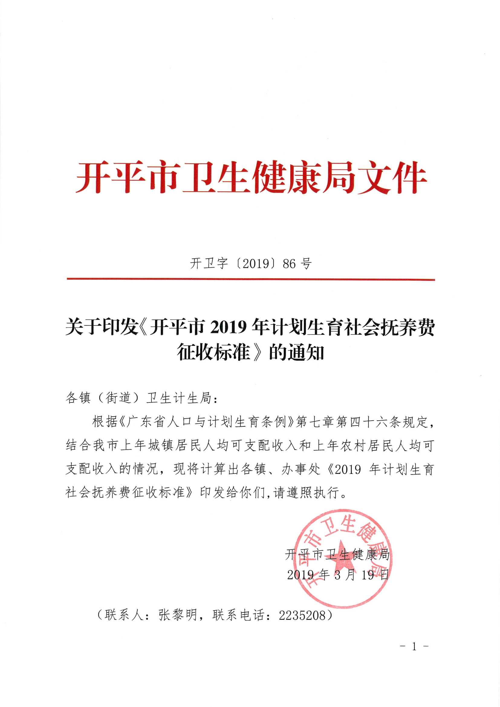 開平市2019年計劃生育社會撫養費征收標準(開衛字[2019]86號)