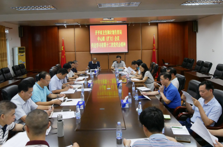 7月12日上午,開平市衛生計生局召開會議,專題傳達學習省第十二次黨代會精神。市衛生計生局黨組書記、局長朱喬主持會議并講話,局機關全體黨員干部、市直醫療單位相關人員共20余人參加會議。