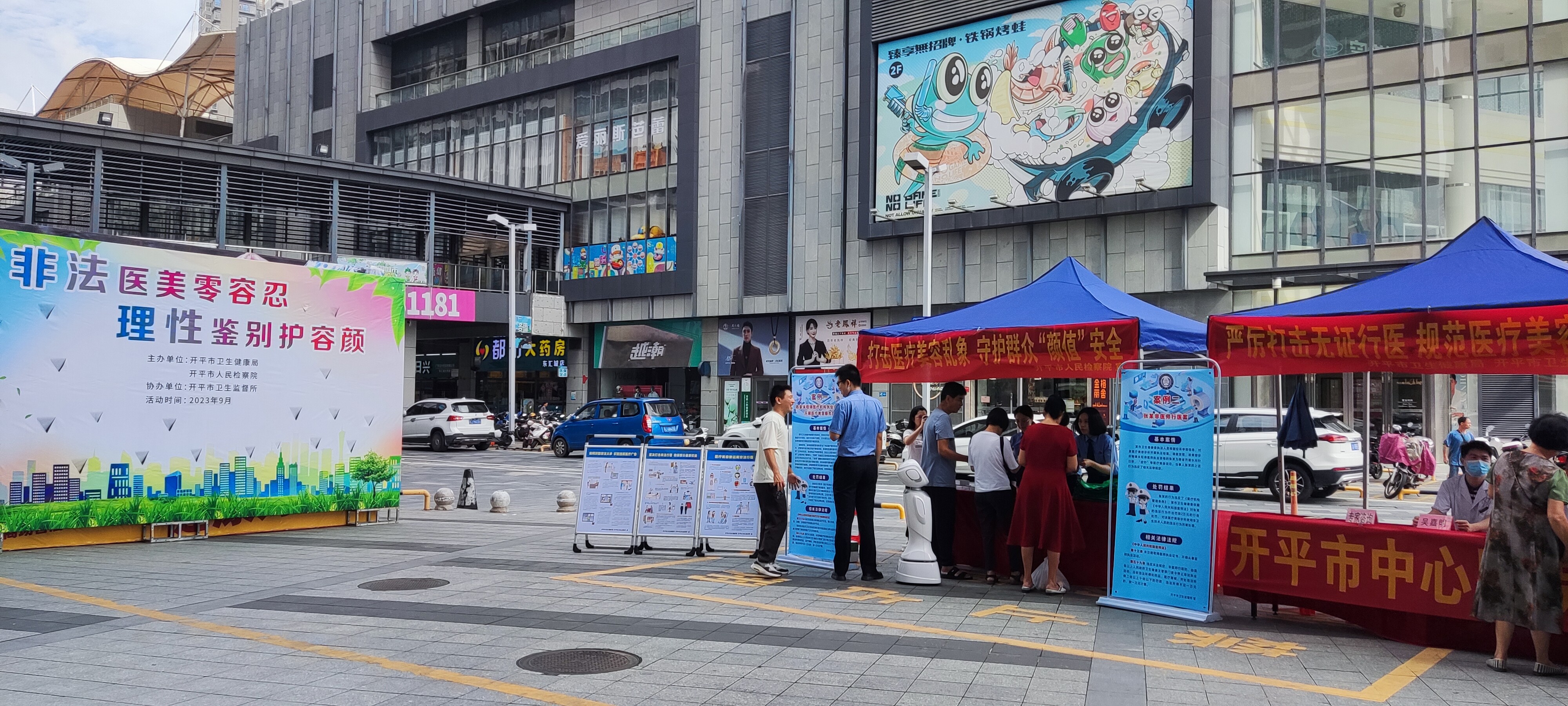 來源:開平市衛生監督所 2023年9月6日,市衛生健康局、市檢察院、市衛生監督所聯合開展主題為“非法醫美零容忍,理性鑒別護容顏”醫療美容普法宣傳活動,旨在宣傳醫療美容相關法律法規知識,提升廣大消費者醫療美容安全意識、維權意識,引導公眾理性認知,切實維護消費者合法權益。 普法宣傳現場,執法人員與普法機器人“平平”通過現場說法、現場咨詢解答、游戲問答、案例講解等群眾喜聞樂見的形式,面對面向群眾講解了什么是生活美容和醫療美容,如何辨別生活美容和醫療美容及生活美容院非法開展醫療美容的危害及如何維權舉報報等內容,多角度、全方位深入宣傳非法醫療美容的危害,普及有關法律知識和醫療美容科普知識。 此次宣傳活動共發放宣傳手冊200余份,現場解答群眾問題40余個,以“零距離”服務群眾的方式,讓廣大群眾聽得懂,記得牢,取得了良好的宣傳效果。 下一步,市衛生監督所將繼續加大力度,擴大打擊非法醫療美容普法宣傳的覆蓋率和群眾知曉率,引導廣大群眾遠離非法“醫美”,切實保障人民群眾健康權益,傳遞美麗正能量。