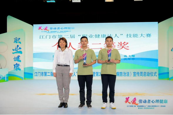 為全面提升職業(yè)健康工作質(zhì)量和水平,落實(shí)職業(yè)病防治“十四五”規(guī)劃,推動(dòng)職業(yè)健康事業(yè)發(fā)展,助力“職業(yè)健康保護(hù)行動(dòng)”。4月25日下午,江門市衛(wèi)生健康局聯(lián)合江門市總工會(huì)在江門市工人文化宮舉辦江門市第二屆“職業(yè)健康達(dá)人”技能大賽暨第23個(gè)《職業(yè)病防治法》宣傳啟動(dòng)儀式。 此次技能大賽設(shè)置了多個(gè)環(huán)節(jié),涵蓋職業(yè)健康理論知識(shí)測(cè)試,重點(diǎn)考查選手對(duì)職業(yè)健康法律法規(guī)、防護(hù)知識(shí)、健康素養(yǎng)等內(nèi)容的掌握。操作技能比拼,如常見(jiàn)職業(yè)病危害個(gè)體防護(hù)用品穿戴、自救互救操作等實(shí)際操作。還有健康影響力能力展示,要求選手以情景演繹、科普演講等形式,傳播職業(yè)健康理念,展示推廣健康工作方式的示范引領(lǐng)能力。 開(kāi)平市衛(wèi)生健康局高度重視此次比賽,賽前精心組織選拔參賽人員,積極開(kāi)展針對(duì)性培訓(xùn)和排練。比賽現(xiàn)場(chǎng),我市參賽隊(duì)伍3名參賽隊(duì)員精神飽滿、沉著冷靜,在各個(gè)環(huán)節(jié)中各展所能。理論知識(shí)測(cè)試環(huán)節(jié),認(rèn)真思考、精準(zhǔn)作答;操作技能比拼中,規(guī)范熟練完成各項(xiàng)操作;健康影響力能力展示環(huán)節(jié),創(chuàng)意十足,通過(guò)小品、模擬演練等生動(dòng)方式科普職業(yè)健康知識(shí)。 經(jīng)過(guò)激烈角逐,我市參賽隊(duì)伍取得了優(yōu)異成績(jī),斬獲個(gè)人賽一等獎(jiǎng)1名、二等獎(jiǎng) 1名、優(yōu)秀獎(jiǎng) 1名;團(tuán)體賽知識(shí)競(jìng)賽一等獎(jiǎng)、技能展示一等獎(jiǎng),兩項(xiàng)總分第一,榮獲團(tuán)體賽一等獎(jiǎng),盡顯我市職業(yè)健康達(dá)人風(fēng)采。 (開(kāi)平市隊(duì)表隊(duì)榮獲知識(shí)競(jìng)賽一等獎(jiǎng)、技能展示一等獎(jiǎng)、團(tuán)體賽一等獎(jiǎng)) 接下來(lái),市衛(wèi)生健康局將以此次比賽為契機(jī),持續(xù)加強(qiáng)職業(yè)健康工作,推動(dòng)用人單位落實(shí)主體責(zé)任,切實(shí)保障勞動(dòng)者的職業(yè)健康權(quán)益,在全市營(yíng)造更加濃厚的職業(yè)健康保護(hù)氛圍。 (開(kāi)平市代表隊(duì)國(guó)電投(江門)能源發(fā)展有限公司張君冬榮獲個(gè)人賽一等獎(jiǎng)) (開(kāi)平市代表隊(duì)國(guó)電投(江門)能源發(fā)展有限公司蔣飛翔榮獲個(gè)人賽二等獎(jiǎng)) (開(kāi)平市代表隊(duì)國(guó)電投(江門)能源發(fā)展有限公司祁菲榮獲個(gè)人賽優(yōu)秀獎(jiǎng))