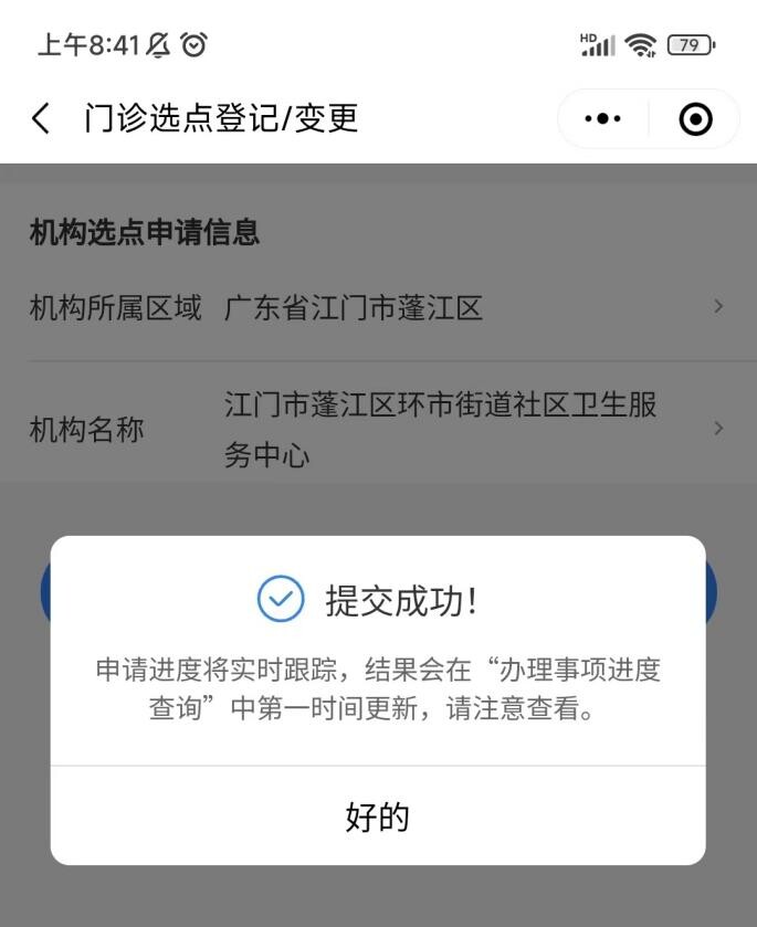 第三步:選擇需要變更的定點醫療機構,完成后點擊提交,系統顯示“提交成功”,選點結果信息可在前端頁面展示。