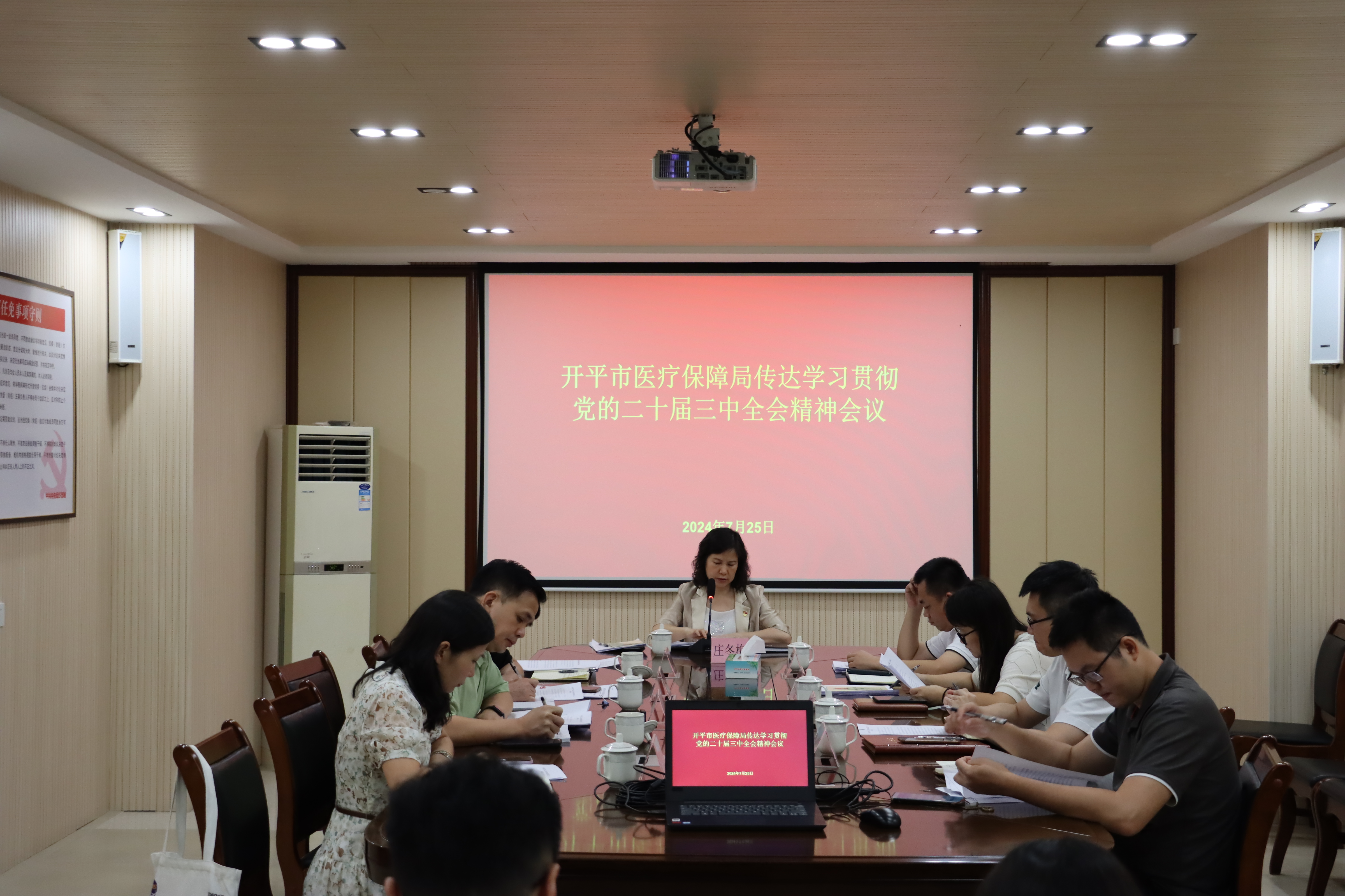 2024年7月25日下午,開平市醫(yī)療保障局召開黨組理論學(xué)習(xí)中心組(擴大)會議,認(rèn)真學(xué)習(xí)貫徹黨的二十屆三中全會精神及廣東省傳達學(xué)習(xí)貫徹黨的二十屆三中全會精神干部大會、江門市傳達學(xué)習(xí)貫徹黨的二十屆三中全會精神干部大會精神。局黨組書記莊冬梅同志主持會議并講話,局機關(guān)和市醫(yī)保中心全體黨員干部參加會議。