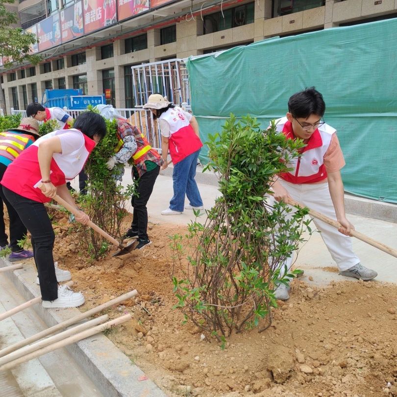 活動現場,20余名黨員志愿者身著紅馬甲,在公控集團黨委書記、董事長伍衛良的帶領下,分組協作、配合默契,揮鍬挖坑、扶正樹苗、培土澆水,每個環節都一絲不茍。經過一番精心細致的栽種作業,新栽種的樹苗整齊排列,在春日暖陽下傲然挺立,為逕頭中路沿線披上了一襲嶄新的綠裝,成為一道亮麗的生態風景線。